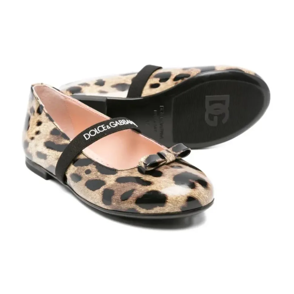 Dolce & Gabbana Ballerina i leopardprintet kalveskind, detaljeret med en elastik med logo foran og en sløjfe. Den flade gummisål giver komfort hele dagen til både afslappede og formelle looks. Vigtigste egenskaber: Brun | Kalveskind | Elastisk rem med logo | Flad gummiydersål | Leopardprintet finish | Sløjfedetalje | Logoelastik foran | Ballerina silhuet | Sammensætning & pleje: Ydre: 100% kalveskind | For: 100% læder | Sål: 100% gummi | Specialiseret læderrensning.