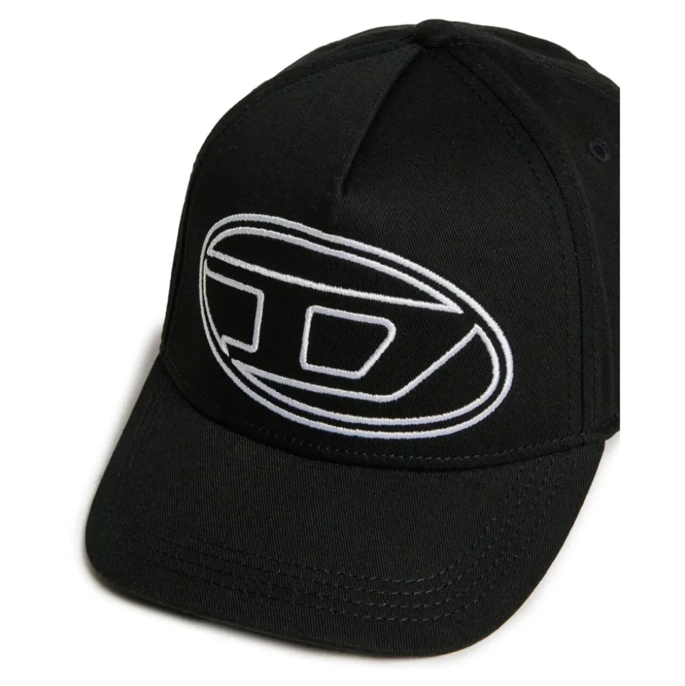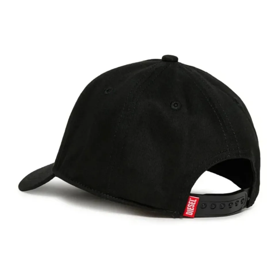 Diesel Baseball Cap kombinerer en struktureret skygge med brandets broderede Oval D-logo for tydelig identitet og solbeskyttelse. Fremstillet i åndbar bomuld, velegnet til hverdagsbrug med en komfortabel, justerbar pasform. Nøgleegenskaber: Sort | Nero | Bomuld | Åndbar | Holdbar | Blød finish | Struktureret skygge | Justerbar stroplukning bagpå | Broderet Oval D-logo | Klassisk baseball-silhuet | Dimensioner og pasform: Størrelse I: 52 cm total bredde | Størrelse II: 54 cm total bredde | Størrelse III: 56 cm total bredde | Justerbar lukning bagpå for en tilpasselig pasform | Sammensætning og pleje: 100% bomuld | Håndvask. Må ikke bleges. Kølig strygning (maks. 110°C). Må ikke renses. Må ikke tørretumbles. Tørres fladt i skyggen. Følg yderligere vaskeanvisninger på tøjetiketten.