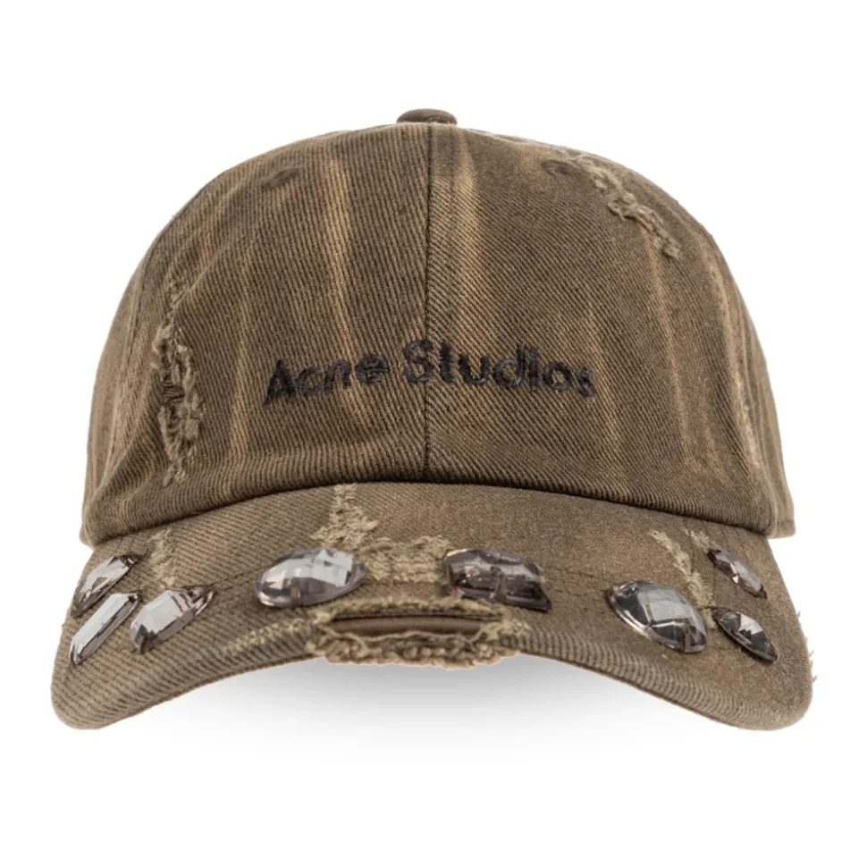 Acne Studios Baseball Cap kombinerer vintage-inspireret slid med iøjnefaldende krystaludsmykninger for en raffineret, afslappet accent. Bomuldskonstruktionen og det broderede Acne Studios-logo skaber en poleret finish til hverdagsbrug. Vigtigste egenskaber: Brun | Bomuld | Buet skygge | Slidt finish med tilsigtede slidmærker | Store krystalstenapplikationer på forsiden af skyggen | Broderet Acne Studios-logo på forsiden af kronen | Vintage æstetik | Sammensætning og pleje: Bomuld