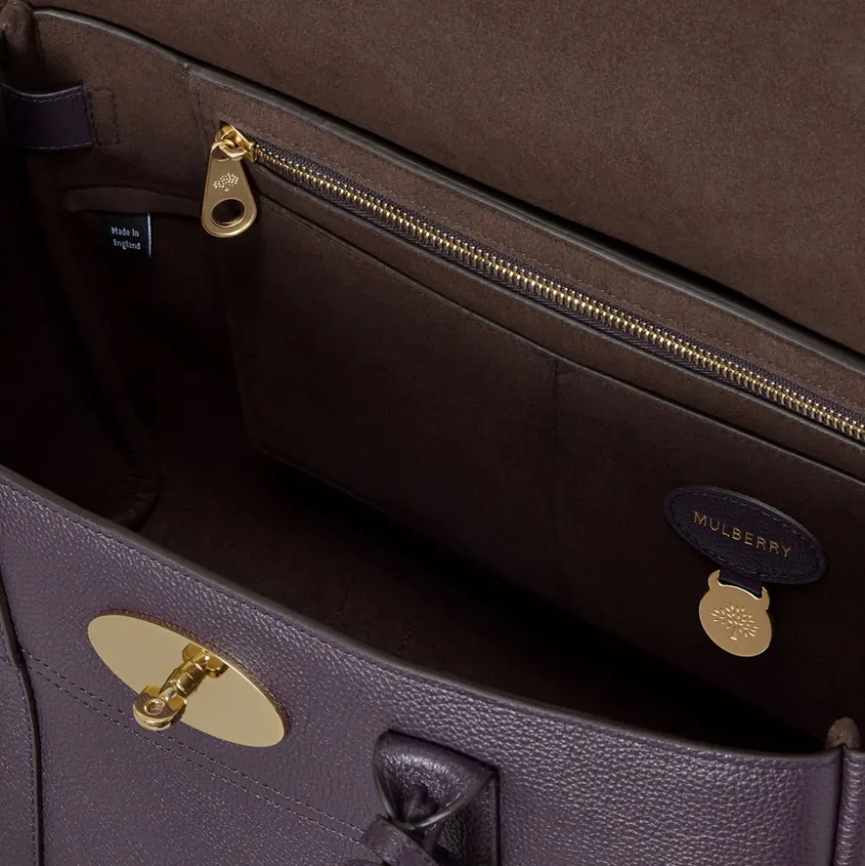 Mulberry Bayswater er en klassisk lædertaske, der kombinerer brandets karakteristiske Postman’s Lock med en struktureret silhuet. Designet til hverdagsbrug, og den tilbyder organiserede lommer og justerbare indvendige sider for ekstra kapacitet. Nøgleattributter: Dyb aubergine | Lilla | Læder | Postman’s Lock lukning | To tophåndtag | Indvendig lynlåslomme | To indvendige stiklommer | Hængende læderfob med skjult hængelås | Fire metalfødder på bunden | Indvendige beltede sider for justerbar kapacitet | Struktureret taske silhuet | Flaplukning | Lille klassisk korntekstur | Signatur Postman’s Lock | Mål og pasform: Højde: 26,5 cm | Længde: 36 cm | Dybde: 16,5 cm | Bæres i hånden eller over skulderen | Indvendige beltede sider for justerbar kapacitet | Sammensætning og pleje: 100% Læder