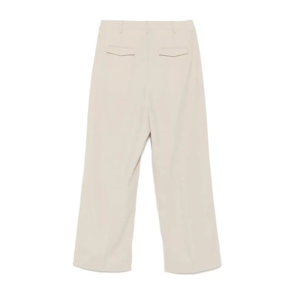 Opgrader din garderobe med disse Birgitte Herskind straight bukser i lys beige. Med skjult frontknap, hægte og lynlås lukning, bæltestropper, to sidelommer og to baglommer.