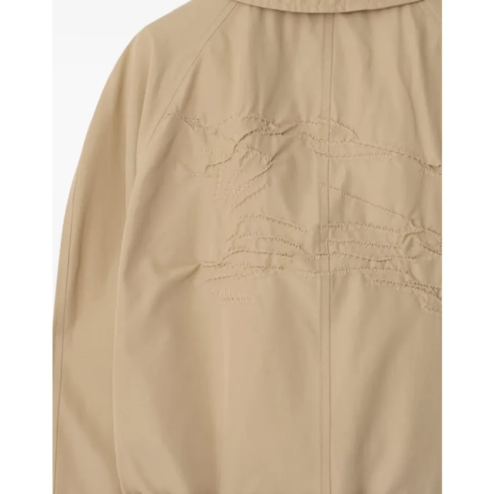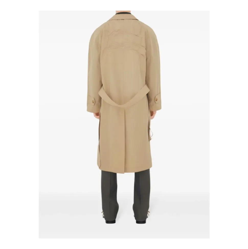 Opgrader din stil med Burberry Beige Equestrian Knight Coat, en sofistikeret enkeltknappet frakke med det ikoniske Equestrian Knight-motiv. Perfekt til at tilføje et strejf af elegance til ethvert outfit. Produkt detaljer: Beige | Gabardinevævning | Skjult knaplukning foran | Bælte ved ærmerne | To paspolerede sidelommer | Bælte i taljen | Amerikansk slids bagpå | Klassisk krave | Lange ærmer | Lige kant | Knælangt design | Dimensioner og pasform: Regular fit |