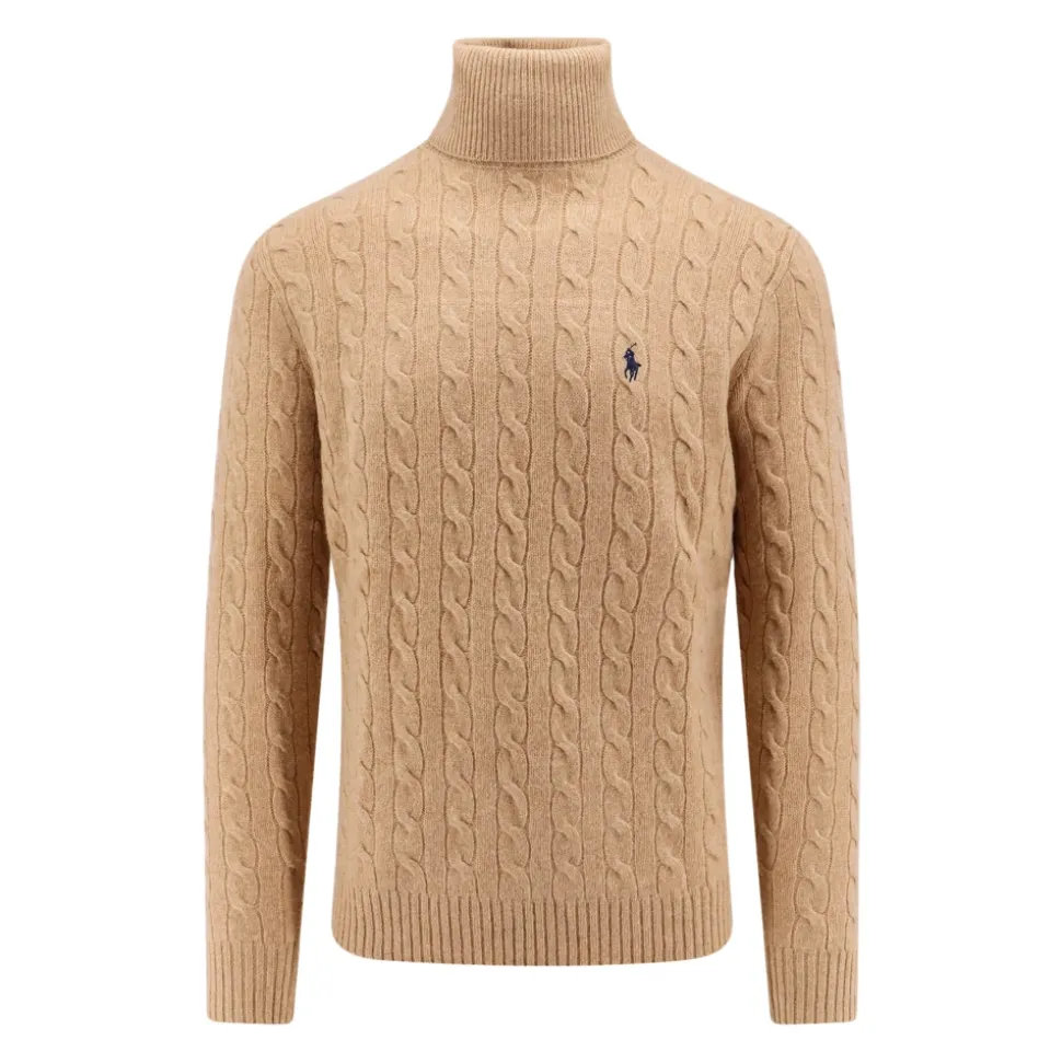 Forkæl dig selv med denne Polo Ralph Lauren Turtleneck Knitwear til mænd. Langærmet ribstrikket turtleneck med broderet logo og flettet design. Lavet af 90% certificeret uld og 10% cashmere.