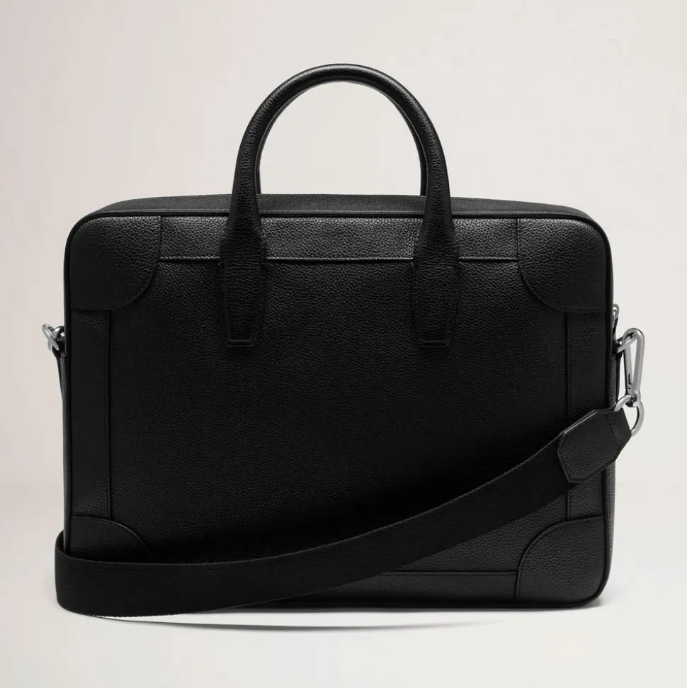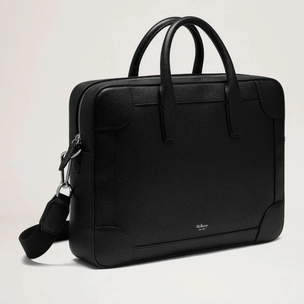 Mulberry Belgrave Dokumentmappe er en tidløs dokumentholder i læder, designet til at bære dokumenter og daglige fornødenheder i hånden eller over skulderen. Vigtige egenskaber: Sort | Læder | Justerbar skulderrem i webbing | Top håndtag til at bære i hånden | Lynlås lukket hovedrum | Indvendig lynlåslomme | To indvendige slip lommer | Canvas foer | Traditionel, tidløs silhuet | Foliepræget Mulberry signatur på forsiden | Sølvfarvet hardware | Lille klassisk narv tekstur | Dimensioner & pasform: Højde: 28 cm | Længde: 38 cm | Dybde: 7 cm | Hanke fald: 11 cm | Bæremuligheder: hånd eller over skulder | Justerbar skulderrem | Sammensætning & pleje: 100% Læder