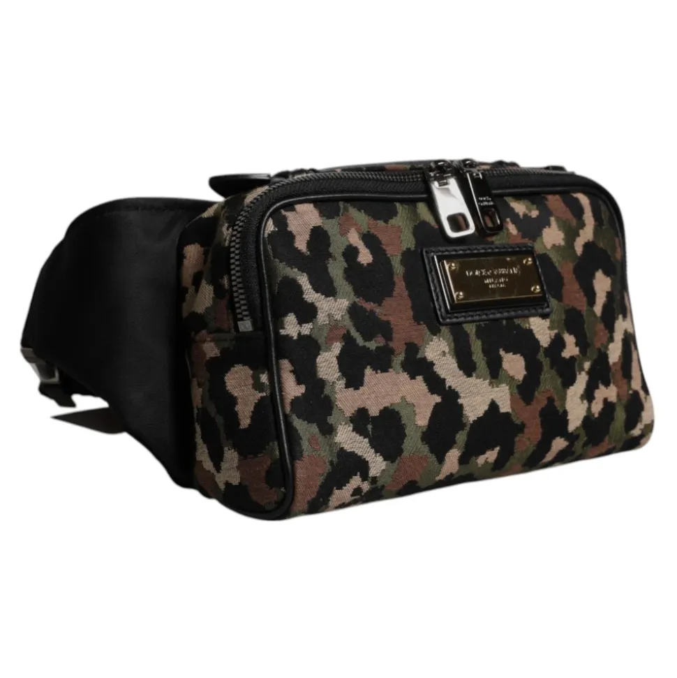 Dolce & Gabbana Belt Bag i flerfarvet leopardprint kombinerer dristig DG-branding med praktisk håndfri brug. Den kompakte taske har indvendige lynlåslommer og guldfarvet hardware for sikker og stilfuld hverdagsbrug. Vigtige egenskaber: Flerfarvet | Sort | Bomuld | Justerbar taljerem | Indvendige lynlåslommer | Lynlåslukning | Logo-indgraveret metalhardware | Flerfarvet leopardprint | Guldfarvet hardware | Sort inderfor | DG-logo detalje | Mål & pasform: 21 cm x 13 cm x 7 cm | Rem: 130 cm x 4 cm | Justerbar rem til talje- eller crossbody-brug | Sammensætning & pleje: 40% Bomuld | 30% Polyester | 15% Nylon | 10% Læder | 5% Akryl
