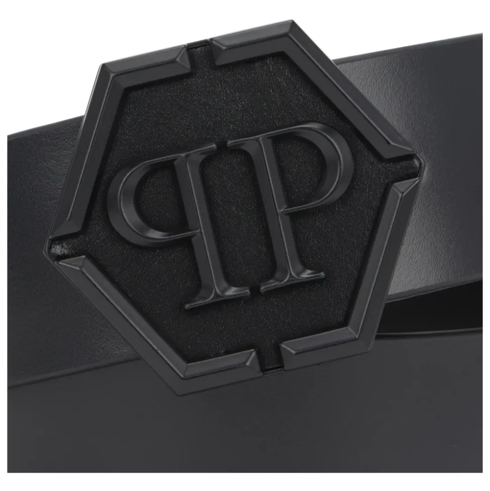 Philipp Plein Belt Hexagon kombinerer et markant sekskantet metalspænde med kalveskinds konstruktion for at skabe en definerende garderobe accent. Den er designet til at tilføje struktur og en signatur hardware detalje til både skræddersyede og afslappede looks. Vigtigste egenskaber: Sort | Kalveskind | Spænde lukning | Sekskantet metalspænde med brand cyphers | Læderforing | Dimensioner & pasform: Højde: 4 cm | Sammensætning & pleje: Ydre: 100% kalvelæder | Foring: 100% kalvelæder | Spænde: Metal
