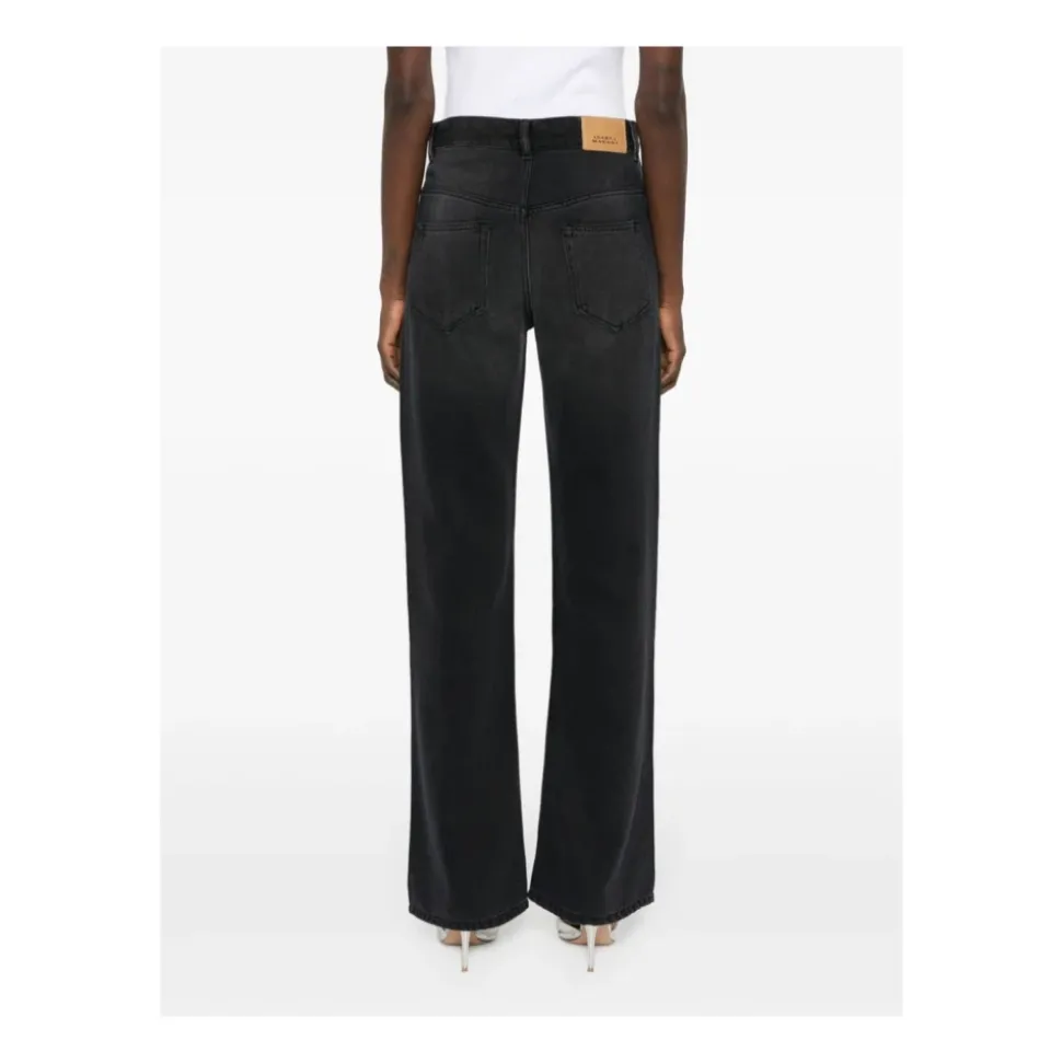 Opgrader din stil med Isabel Marant Belvira Flared Jeans i sort vasket denim. Disse jeans tilbyder en klassisk silhuet med et moderne twist, perfekt til enhver moderne garderobe. Produkt detaljer: Fadedblack | Black | Denim | Flared design | Medium-rise waist | Silver-finish metal details | Dimensioner og pasform: True to size | Regular fit |