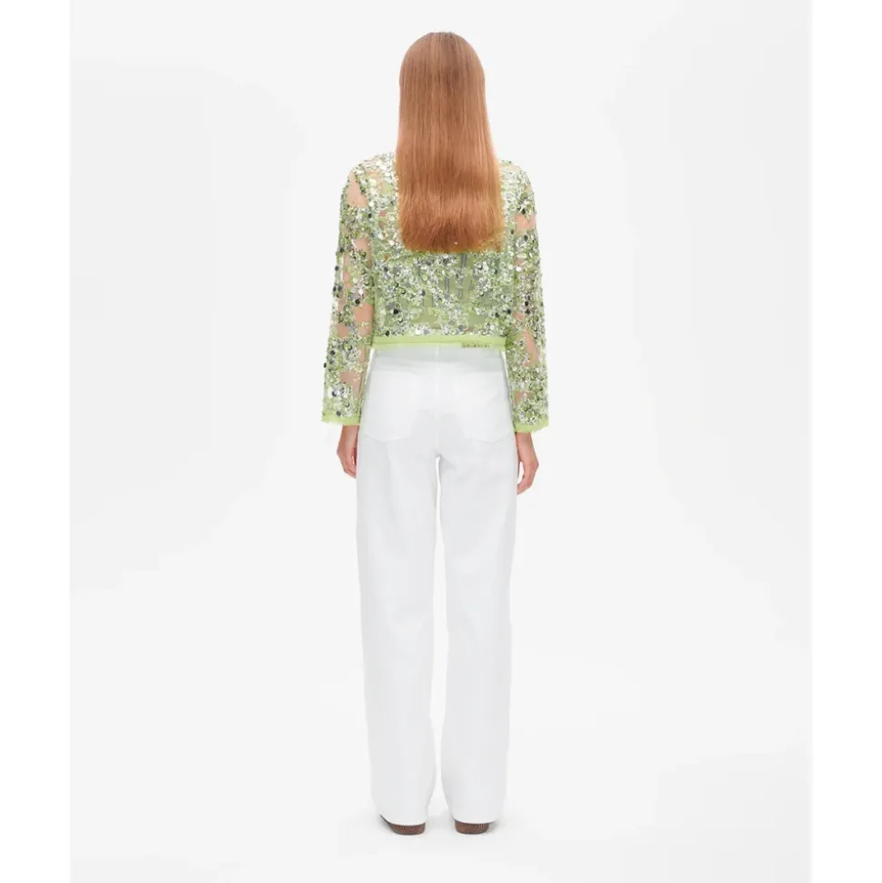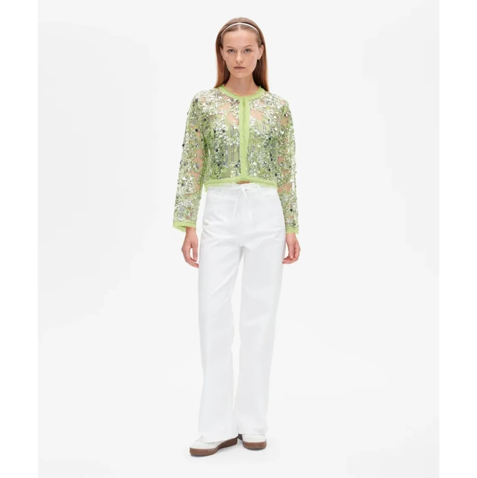 Baum und Pferdgarten Bethina Jacket er en cropped, transparent pailletjakke designet til at tilføje glans til lagdelte looks. Dens transparente base og flossede kanter gør den ideel til aftenoutfit eller til at løfte afslappede ensembler. Nøgleattributter: Herbal garden | Polyester | Ingen stræk | Enkel hægtelukning i nakken | Transparent base | Pailletbesætning | Flossede kanter | Rund halsudskæring | Dimensioner & pasform: Afslappet pasform | Lige snit | Cropped længde | Bestil din normale størrelse | Sammensætning & pleje: 100% Polyester (hovedstof)