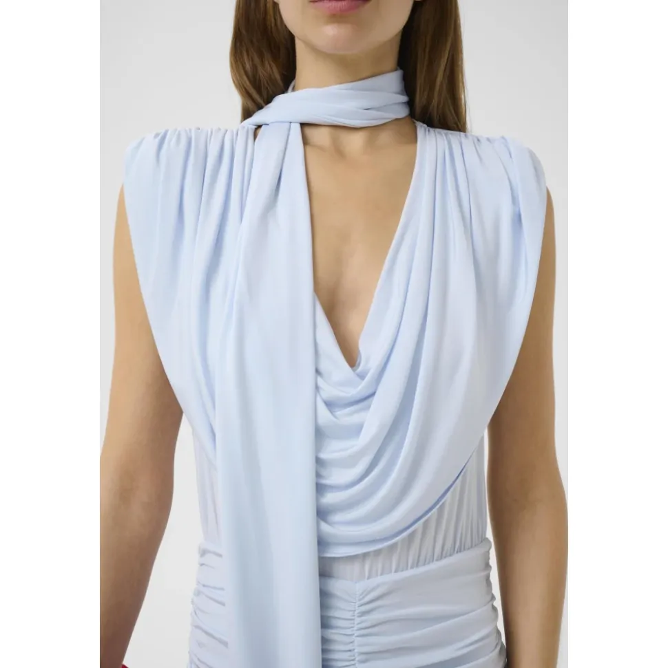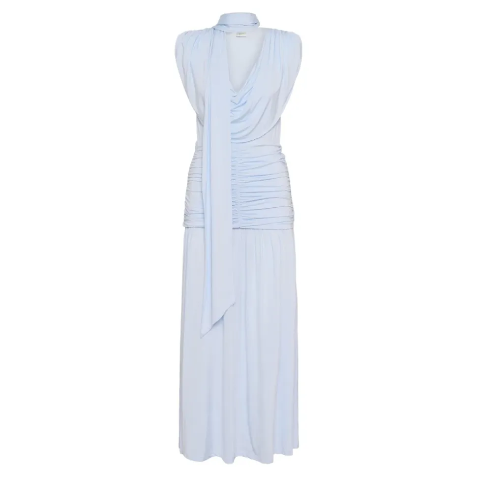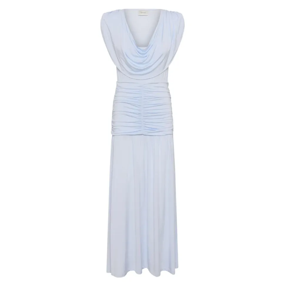 Gestuz Bianca Maxi er en elegant maxikjole til særlige lejligheder i blå, skåret med en let udvidet silhuet og plisserede detaljer. Den er fremstillet af en viskoseblanding for et blødt fald og en subtil glans, med en diskret sideslidse for bevægelsesfrihed. Vigtige egenskaber: Blå | Blue Finch | Viskose | Usynlig lynlåslukning | Delvist foret | Sideslidse | Ærmeløs | Rund halsudskæring | Plisseret talje | Let udvidet skørt | Mål & pasform: Længde i størrelse 36: 155 cm | Normal i størrelsen | Sammensætning & pleje: 98% viskose, 2% elastan | Maskinvask