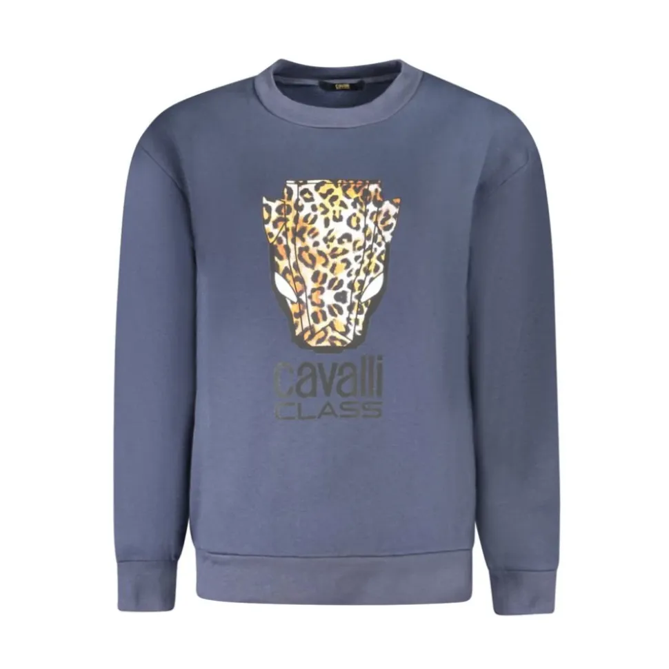 Forkæl dig selv med denne Cavalli Class langærmede sweatshirt til kvinder. Denne sweatshirt med rund hals har et iøjnefaldende tryk af det ikoniske logo, der kombinerer komfort med høj mode. Lavet af en førsteklasses blanding af bomuld og polyester, tilbyder den både stil og blødhed. Forøg dit afslappede look med dette blå mesterværk fra Italien. Materiale: Bomuld, Polyester. Oprindelsesland: Italien. Farve: Blå.