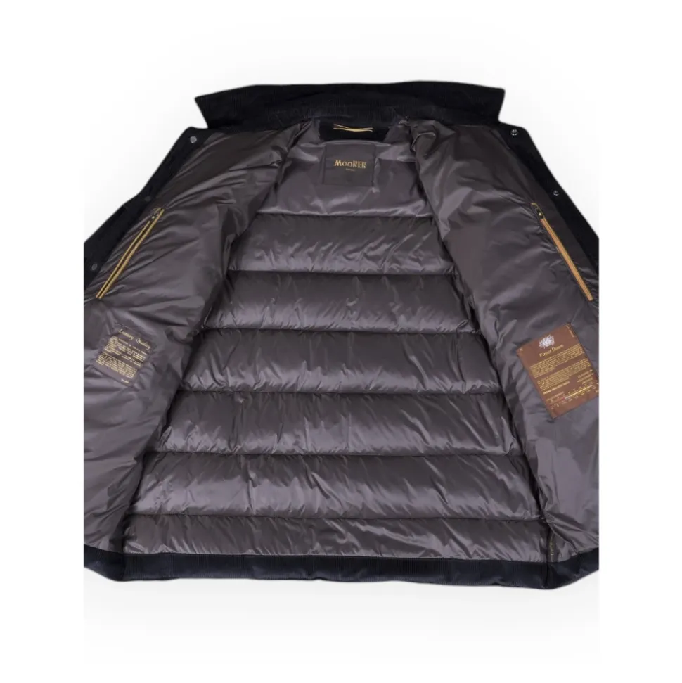 Hold dig varm og stilfuld denne vinter med Moorer VETON-VH BLU jakken til mænd, lavet af 100% Cotone stof.