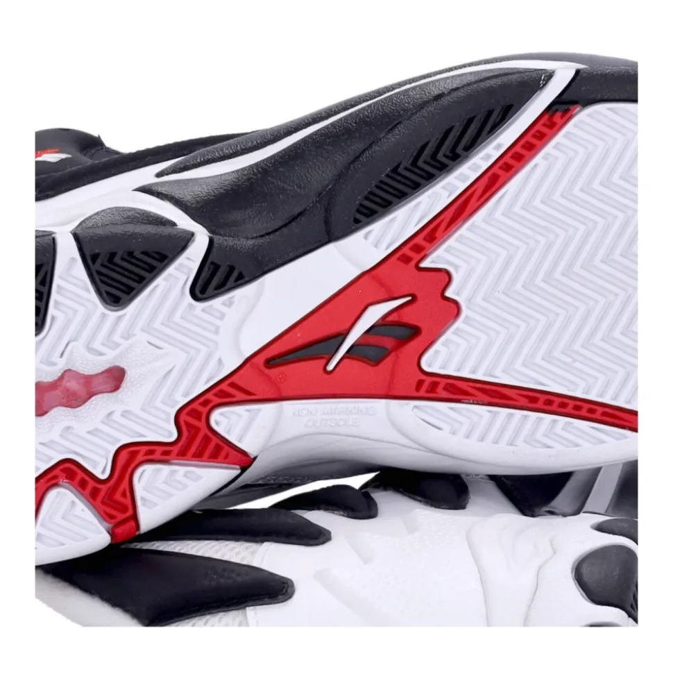 Reebok Blast Core High Shoe er en høj sneaker, der kombinerer læder- og stofkonstruktion med en asymmetrisk farvekombination, der giver hver sko et kontrasterende venstre/højre design. Den har en snørelukning og en ring på hælen for lettere at komme i skoen, hvilket blander baneinspireret stil med praktiske detaljer. Nøgleattributter: Multicolor | Core Black | Cloud White | Vector Red | Læder og stof | Snørelukning | Ring på hælforstærkning for lettere at komme i | Forstærket hæl | Høj silhuet | Asymmetrisk kontrasterende farvedesign (venstre og højre er forskellige) | Reebok-logo indgraveret på pløs, hælkappe og sål | Sammensætning & pleje: Læder | Stof | Gummi
