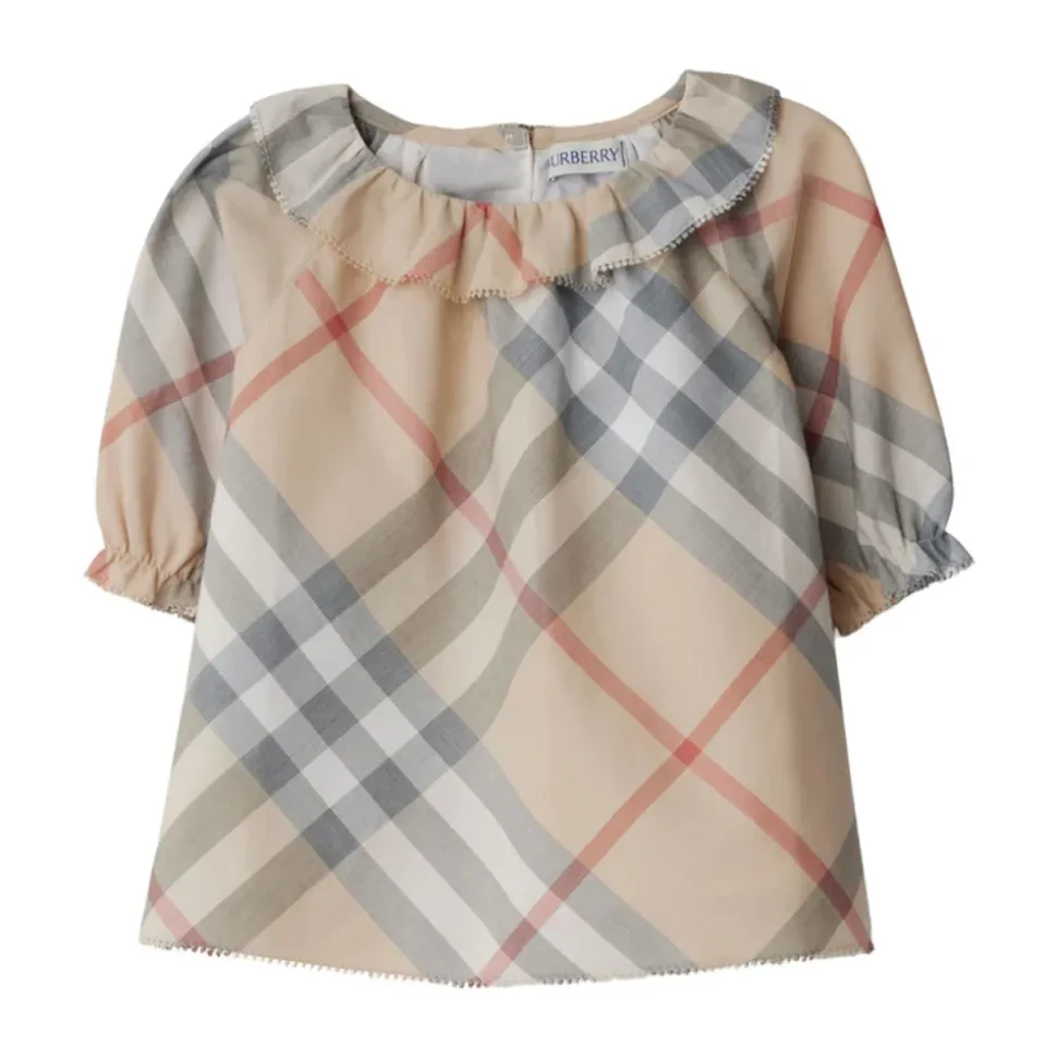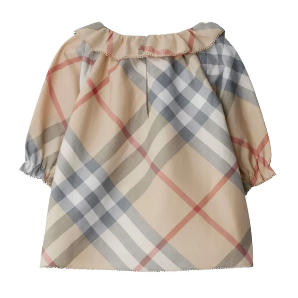 Løft hendes stil med Burberry Kids N2 Emmeline B Check kjolen i en chic Pale Stone nuance. Lavet af 100% bomuld, kombinerer denne kjole komfort og elegance, hvilket gør den perfekt til enhver lejlighed. Et must-have for fashionable unge piger!