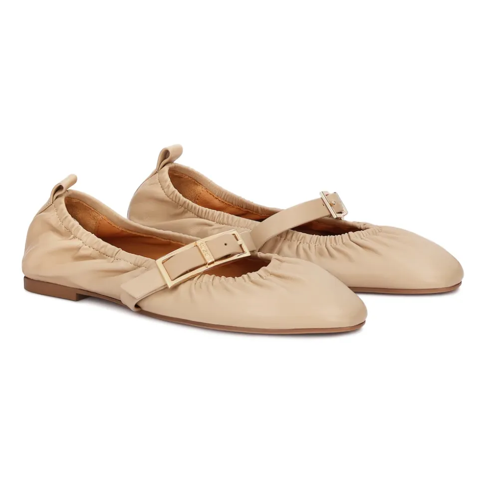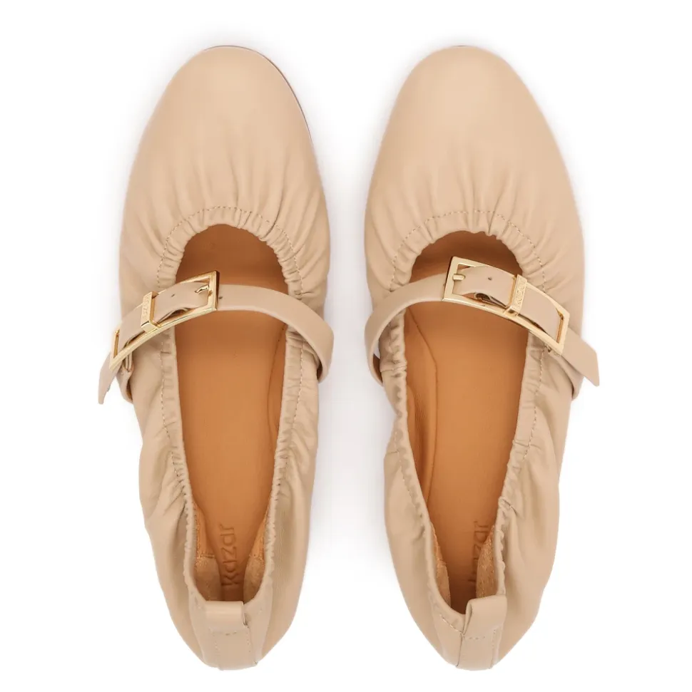 Kazar Bløde Ballerinaer i Læder kombinerer en blød overdel i naturlæder med en dekorativ rem over midtfoden og semianilin-fårskindforing for let og behagelig komfort hele dagen. Vigtige egenskaber: Beige | Læder | Fugtabsorberende semianilin-fårskindforing | Komfort designet til brug hele dagen | Rem over midtfoden med dekorativt spænde for sikker pasform | Fleksibel, lav sål for nem bevægelse | Let konstruktion | Let krøllet overdel | Slank, rund tå | Dekorativt spænde i en gylden nuance | Sammensætning og pleje: Naturlæder (overdel) | Semianilin-fårskind (foring) | Syntetisk sål