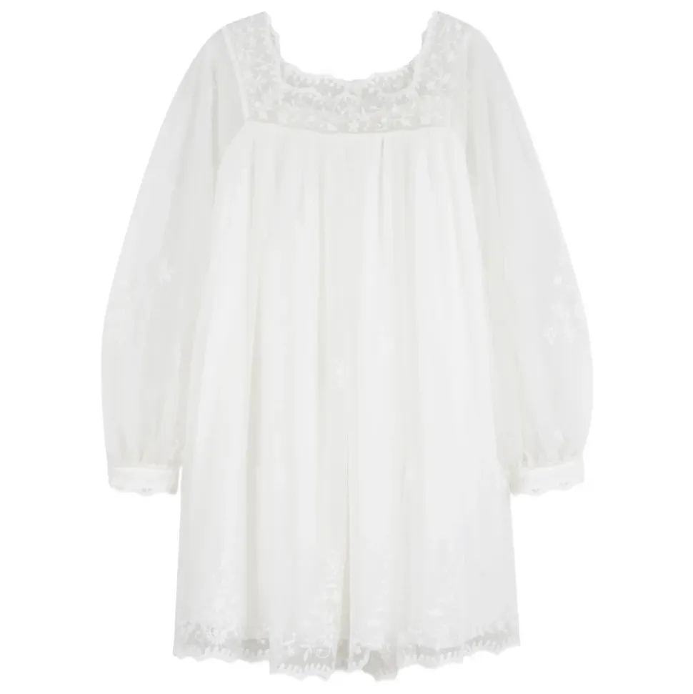 Chloé Blomsterbroderet kjole kombinerer intrikat blomsterbroderi med et viskosetwill-for og en knaplukning bagpå for nem påklædning. Vigtigste egenskaber: Hvid | Polyamid | Knaplukning bagpå | Blomsterbroderi | Viskosetwill-for | Broderet logo foran | Sammensætning & pleje: 100% Polyamid