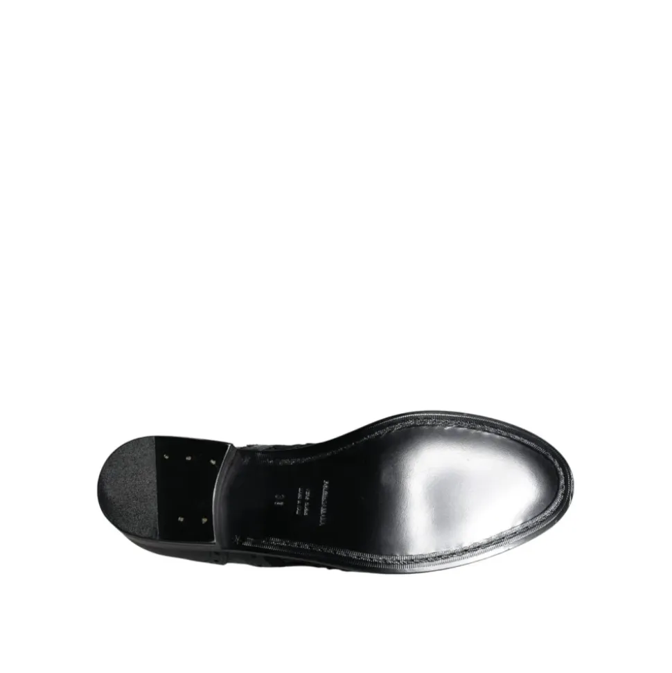 Løft din formelle påklædning med disse udsøgte sorte læderblomsterblonderede kjolesko fra Dolce & Gabbana. Fremstillet med omhyggelig opmærksomhed på detaljer, har disse derby sko snørelukning og er lavet af en luksuriøs blanding af kalveskind, viskose, lammeskind, bomuld og nylon. Skoene er prydet med logo detaljer og har en lædersål, der sikrer både stil og holdbarhed. Fremstillet i Italien, udstråler disse sko høj håndværksmæssig kvalitet og eksklusivitet.