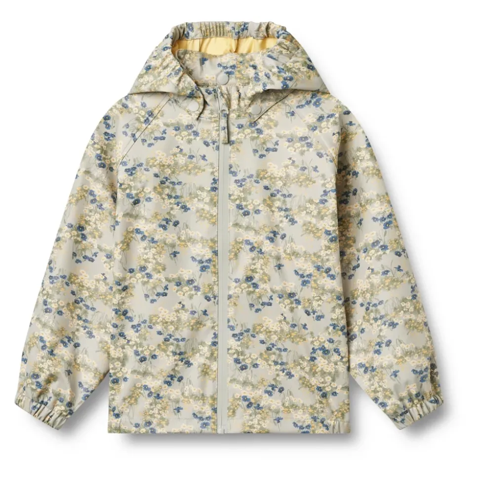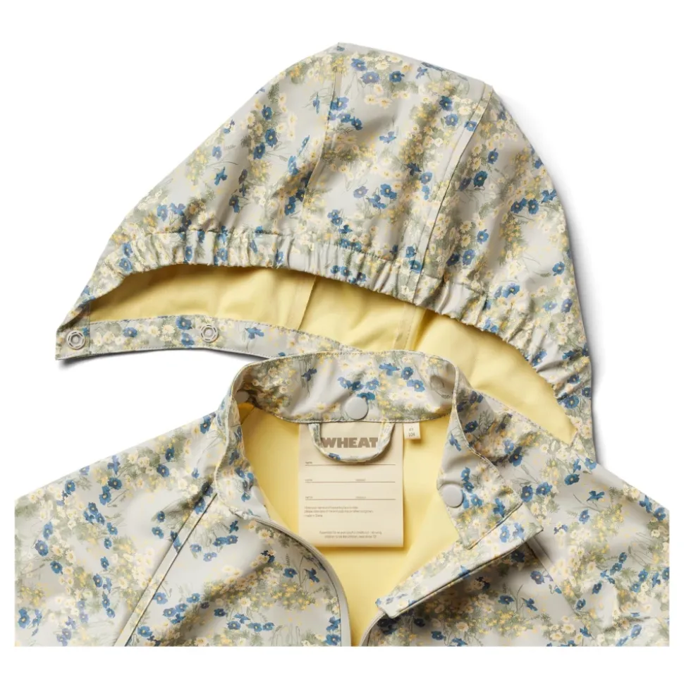 Wheat – Rainwear Chardy Jacket – Meadow Lake Praktisk regnjakke til junior fra Wheat. Denne i en flot lyseblå farve med et smukt blomsterprint over det hele i hvid, gul, blå og grøn.Regnjakken er i vandtæt og holdbart materiale.- Aftagelig og justerbar hætte- Lommer i sidesømmene- Elastikker ved håndled og hætteåbning- Elastik i siderne af bundkanten- RefleksdetaljerWheats praktiske regntøj bør være en fast del af dit barns garderobe. Det er lavet i et superblødt og let materiale, der gør det behageligt for dit barn at have på og bevæge sig i. Det er vandtæt og smudsafvisende og er derfor let at rengøre med en våd klud efter en livlig dag udendørs. Bonusinfo:Printet på denne regnjakke er håndtegnet af Wheats eget in-house designteam. Materiale: 55% Post Consumer polyester, 45% Vandbaseret polyurethane coatingStandard 100 by OEKO-TEX®Rart at vide:- Vandsøjletryk: 8.000 mm- Svejsede sømme- Vandbaseret PU- Vandtæt coil lynlås- Fluor fri vand- og smudsafvisende finish- BIONIC FINISH ECO (Bio finish)- PFC-fri- GRS-certificeret Vask: 30 grader maskinvaskTåler ikke tørretumbler Husk at følge vaske- og brugsanvisningStyle no.: 7358-972R GRS_9520