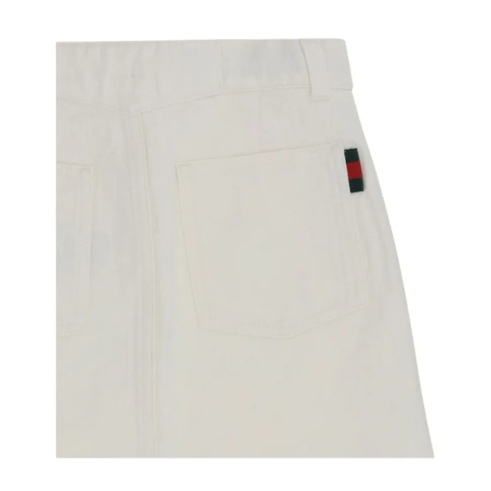 Forkæl din lille pige med denne stilfulde Gucci nederdel i hvid. Med skjult lynlås, knaplukning, bæltestropper, to diagonale lommer og to baglommer.
