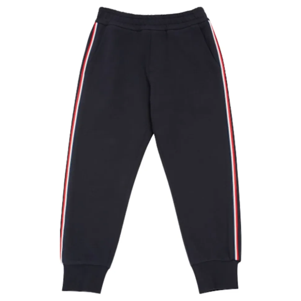 Moncler præsenterer disse børnebukser med kontrastbånd, designet med fokus på komfort og stil med elastisk talje og ankelmanchetter. Perfekte til aktive dage, disse bukser har kontrastfarvede sidebånd og et filtlogoapplikation bagpå. Produkt detaljer: Blå | Bomuld | Elastisk talje | To skrå sidelommer | Elastiske ankelmanchetter | Kontrastfarvede sidebånd | Filtlogoapplikation bagpå | Dimensioner og pasform: Almindelig pasform | Sammensætning og pleje: 100% bomuld | Maskinvask kold, tørretumbles ved lav varme.
