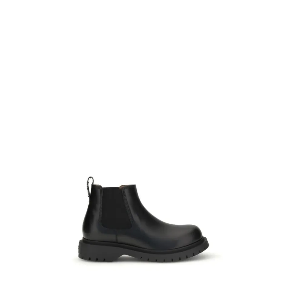 Træd ud i stil med disse Givenchy Chelsea-støvler til mænd. Fremstillet af børstet kalveskind, har disse støvler elastiske sider for nem påtagning og en sikker pasform. Den prægede GIVENCHY-logo på bagsiden tilføjer en luksuriøs detalje, mens logoet prægede indlæg på sålen og den tykke sål giver disse støvler et moderne touch. Produceret i Italien med 100% Bull læder. Sæson: AW25.