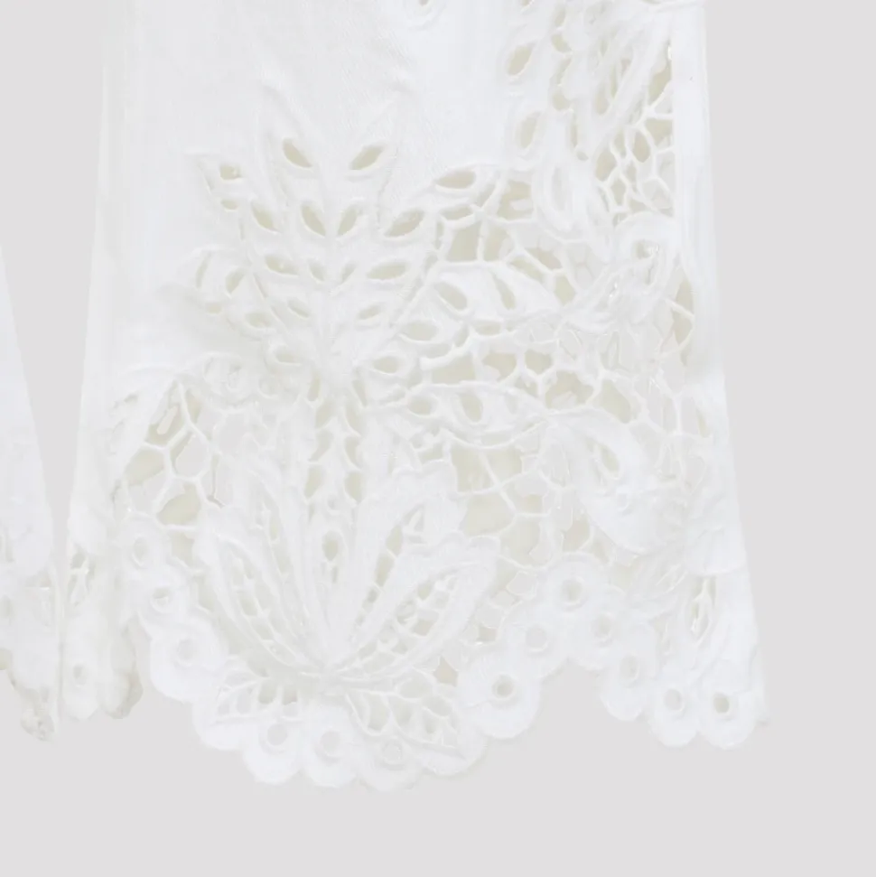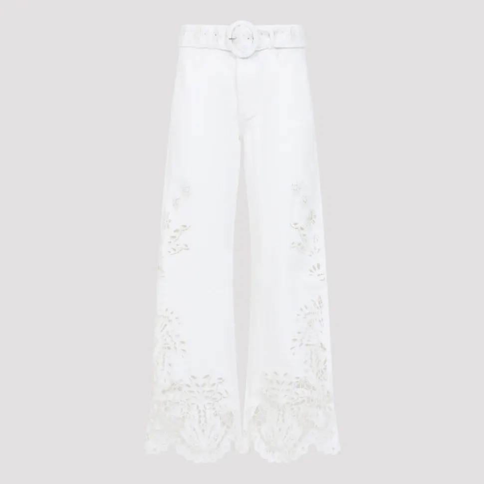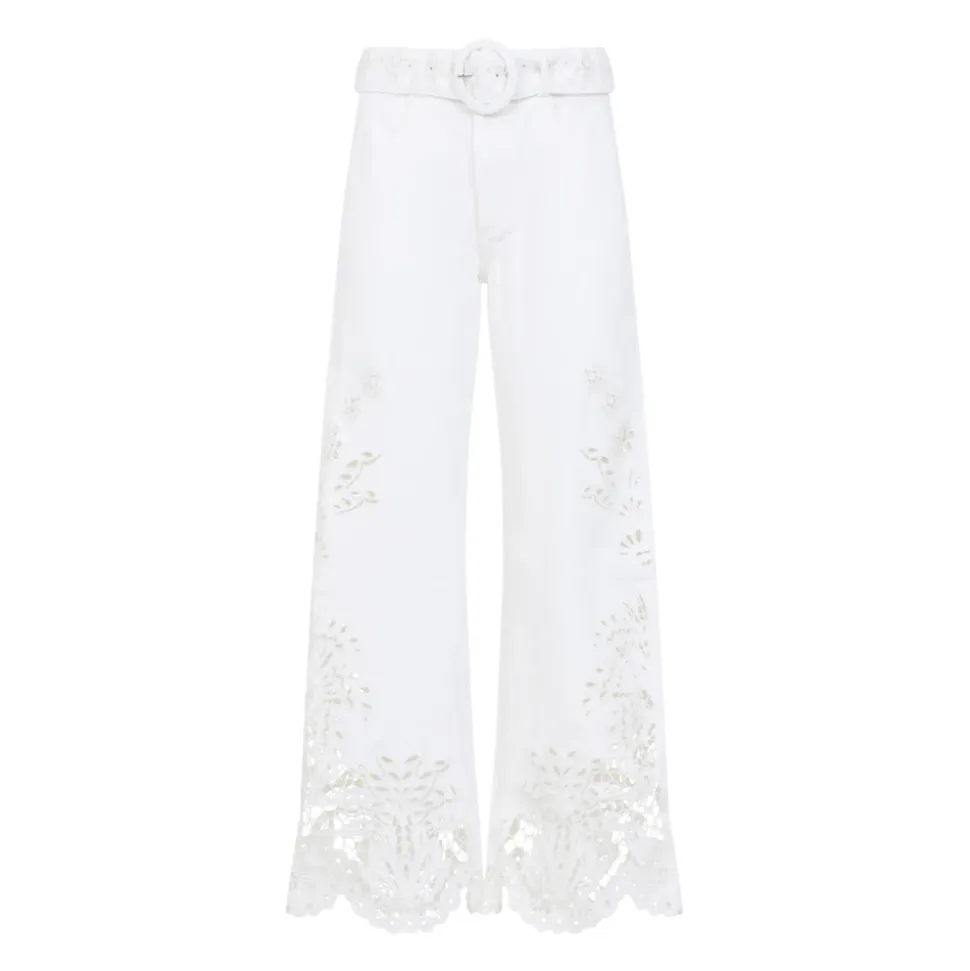 FARM Rio Boho Beauty Richelieu Pants er off-white, mid-waist bukser med brede ben, fremhævet med Richelieu-bælte og broderede detaljer langs benene. De giver en nem og afslappet silhuet med praktiske lommer og bæltestropper. Nøgleattributter: Hvid | Off-white | Bomuld | Letvægt | Bæltestropper | Richelieu-bælte | Forlommer | To påsatte baglommer | Midt i taljen | Richelieu-detaljer langs benene | Brede ben | Dimensioner og pasform: Midt i taljen | Afslappet pasform | Brede ben | Sammensætning og pleje: Bomuld