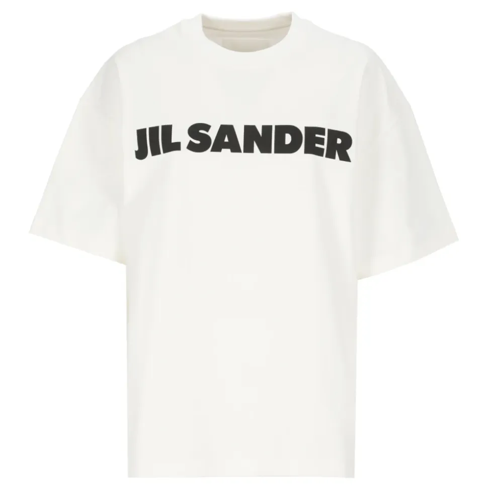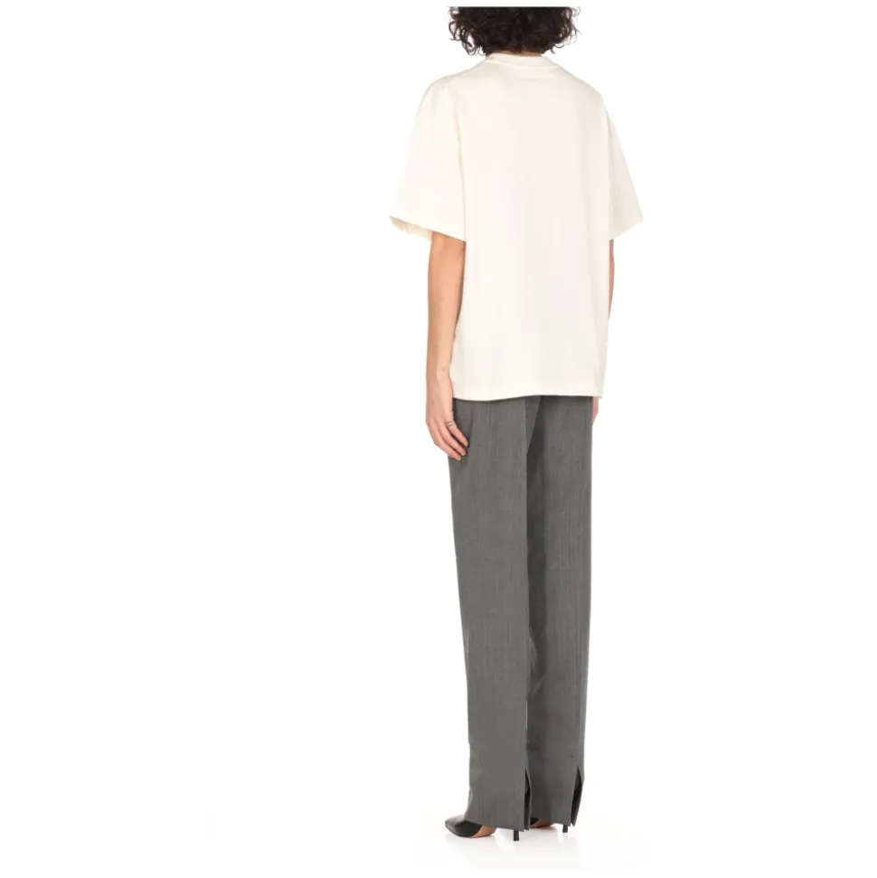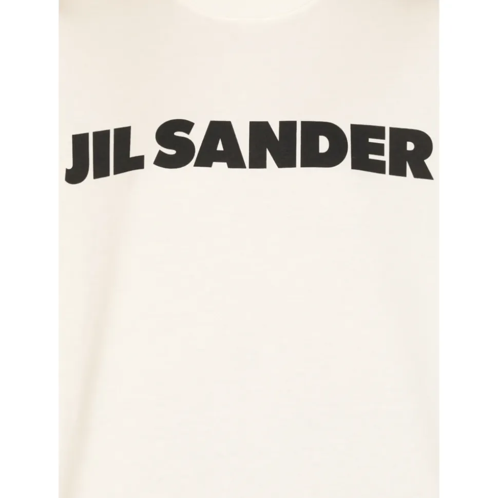 Opgrader din afslappede garderobe med denne Jil Sander bomulds T-shirt, der har en elegant rund hals og korte ærmer. Det kontrasterende logo foran tilføjer et moderne flair. Produkt detaljer: Hvid | Bomuld | Rund hals | Korte ærmer | Front kontrastfarvet logo | Dimensioner og pasform: Modellen er 179 cm høj og bærer størrelse XS | Sammensætning og pleje: 100% Bomuld | Maskinvask kold, tørretumbles ved lav varme