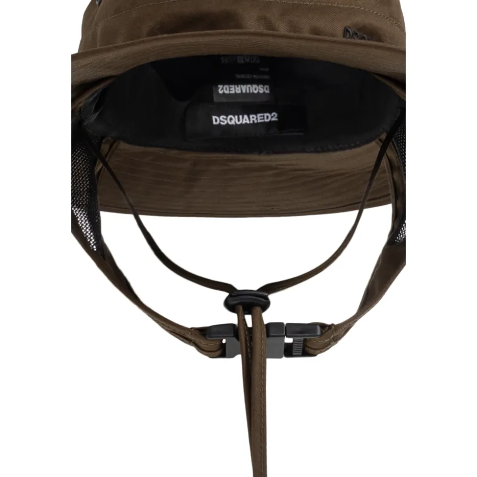 Dsquared2 bomuldshat kombinerer raffineret design med praktiske funktioner og tilbyder en bred, blød skygge for solbeskyttelse og justerbare hagestropper for en sikker og behagelig pasform. Nøgleattributter: Grøn | Bomuld | Åndbar (mesh ventilation) | Solbeskyttelse (bred skygge) | Justerbare hagestropper | Meshindsatser i ørehøjde for ventilation | Behagelig ved længerevarende brug | Bucket hat form | Bred, blød skygge | Synlig designeretiket indvendigt | Sammensætning & pleje: Bomuld
