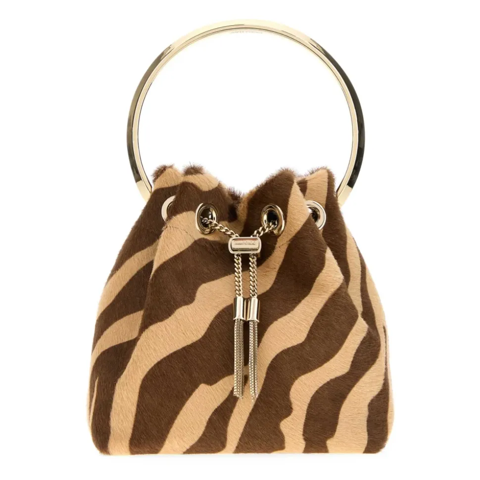 Jimmy Choo Bon Bon Small Bucket Bag er en kompakt bucket bag i trykt kalvehår med snørelukning og et guldfarvet håndtag. Den er designet til et poleret dagslook og let aftenbrug. Nøgleattributter: Multifarvet | Dyreprint | Kalvehår | Snørelukning | Top håndtag | Kæde skulderrem | Enkelt rum | Bucket silhuet | Dyreprint | Guldfarvet hardware | Kompakt form | Dimensioner & pasform: Bredde: 15 cm | Højde: 16 cm | Dybde: 9 cm | Håndtagshøjde: 9 cm | Sammensætning & pleje: Kalvehår | Læderfor