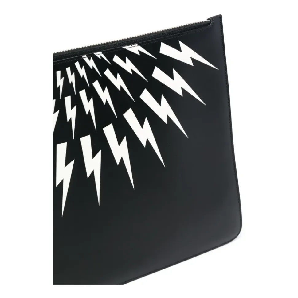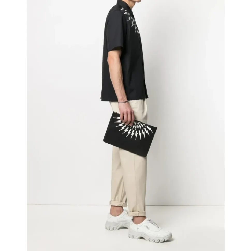 Neil Barrett Borsa er en elegant læderclutch, der kombinerer en lynlåslukning med labelens signatur-lynmotiv. Den er designet til at bære det vigtigste i et kompakt, struktureret format. Nøgleattributter: Sort | Hvid | Læder | Lynlåslukning | Foret | Rektangulær form | Fair-isle lynprint | Glat læderfinish | Brand logo applikation | Dimensioner & pasform: Bredde: 31 cm | Højde: 22 cm | Dybde: 1 cm | Sammensætning & pleje: Læder