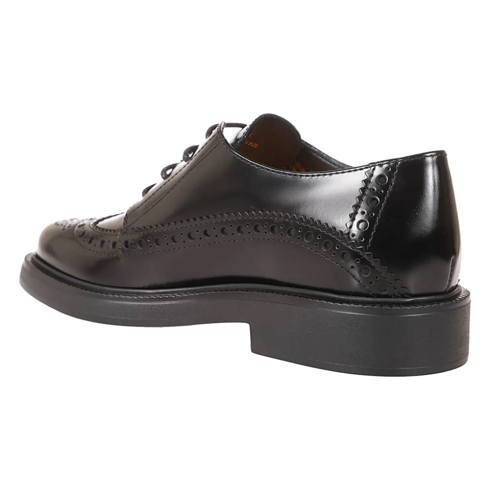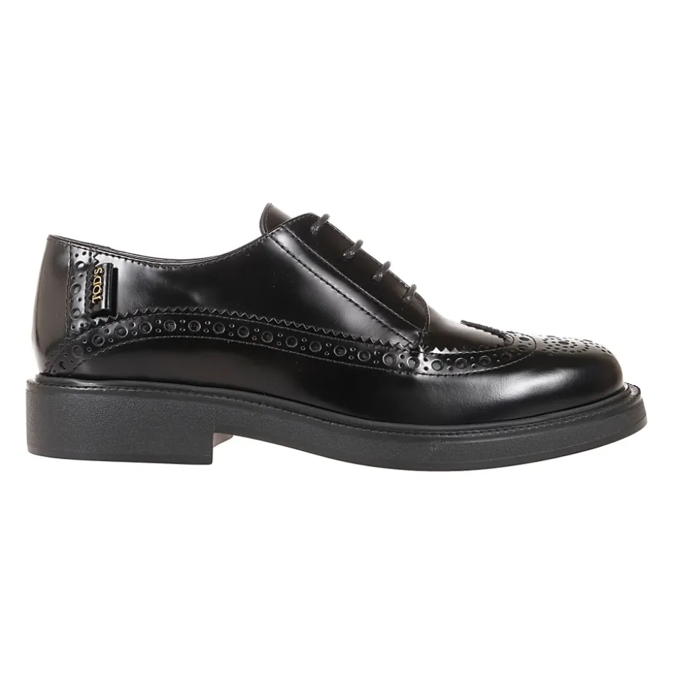 Tod’s damesnederdel i burgunder læder med engelsk-stil brogue-detaljer og gummisål. Findes i EU-størrelser. Leveres med logotaske.