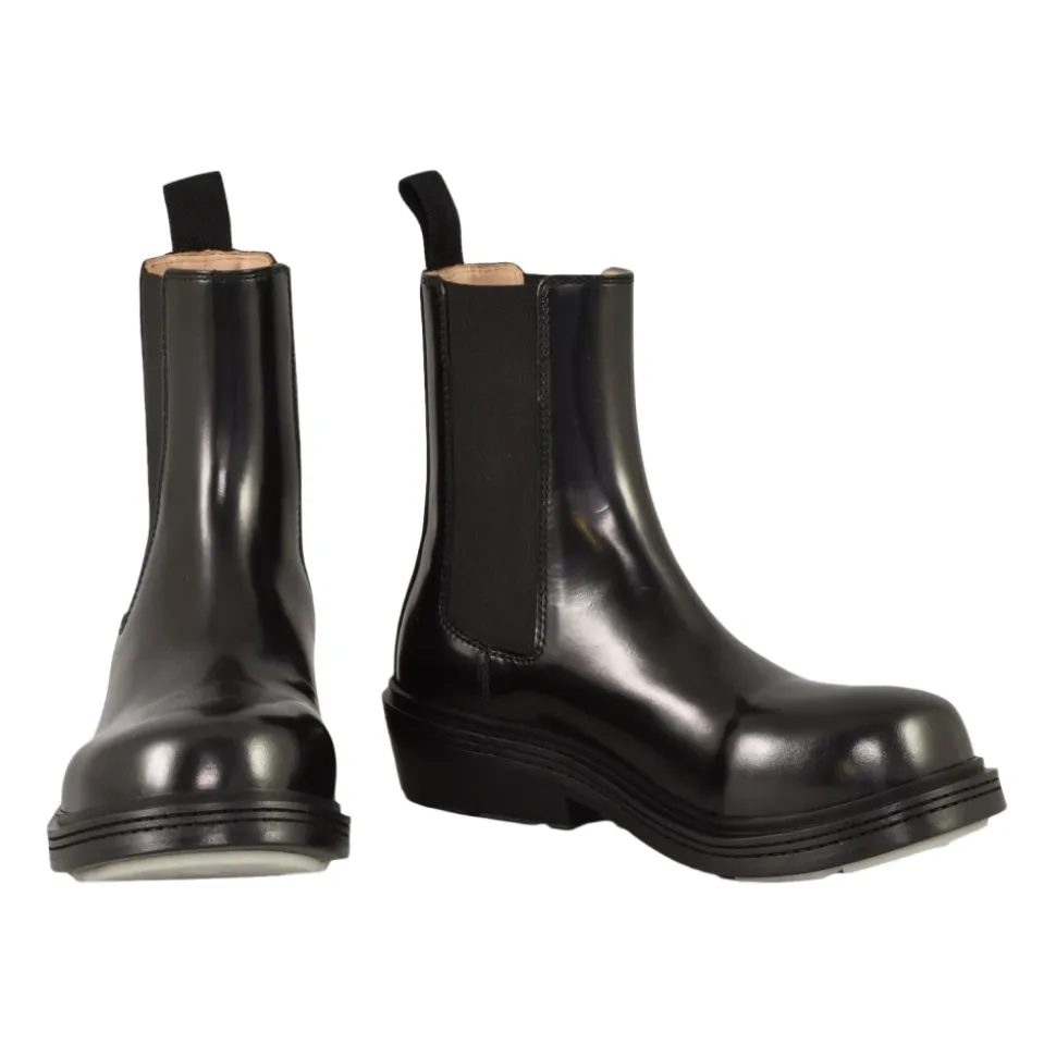 Forhøj din stil med disse Bottega Veneta Fireman Ankle Boots. Lavet af 80% læder og 20% gummi, med en hælhøjde på 4 cm, forstærket rund tå og en sål lavet af læder og gummi.