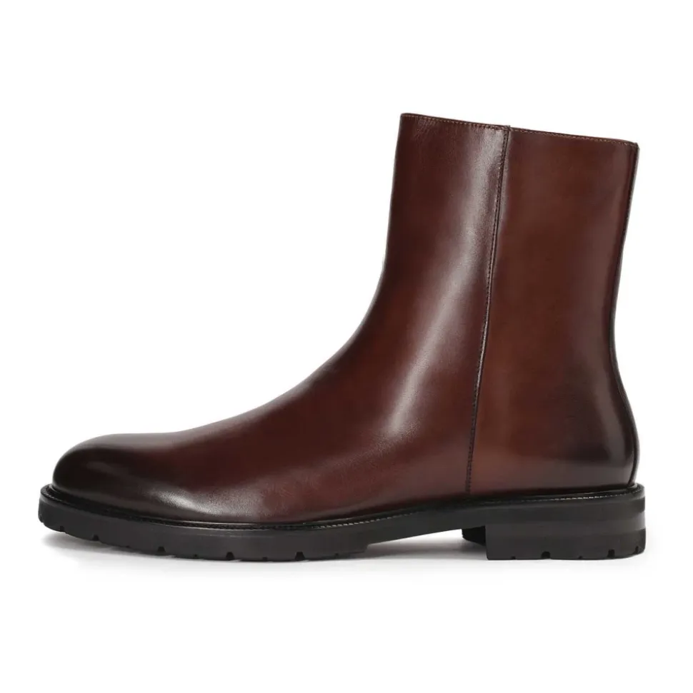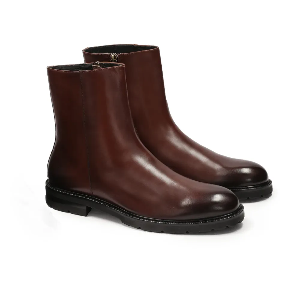 Brune støvler lavet af naturligt læder er karakteriseret ved elegant minimalisme. Den enkle overdel, uden pynt, giver dem et moderne og pænt udseende. Overdelen når over anklen, hvilket giver ekstra støtte og beskyttelse. En lynlås på siden af overdelen gør det nemt at tage skoene på og af, samtidig med at det tilføjer et element af funktionalitet. Den enkle sål er solid og behagelig, ideel til hverdagsbrug. De præsenterede støvler er et glimrende valg for mænd, der værdsætter klassisk, elegant stil kombineret med praktisk anvendelighed. Fåreskindforingen, med dens fremragende fugtabsorberende egenskaber, giver enestående komfort.