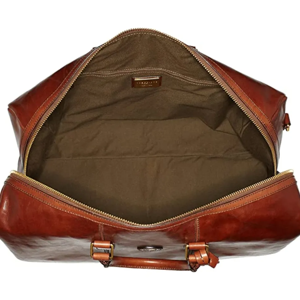 Opdag den perfekte rejseledsager med The Bridge weekendtaske. Lavet i Italien af 100% læder, denne rummelige taske i brun har lynlåslukning, dobbelte håndtag og en justerbar og aftagelig skulderrem. Produktet leveres med en støvpose til opbevaring.
