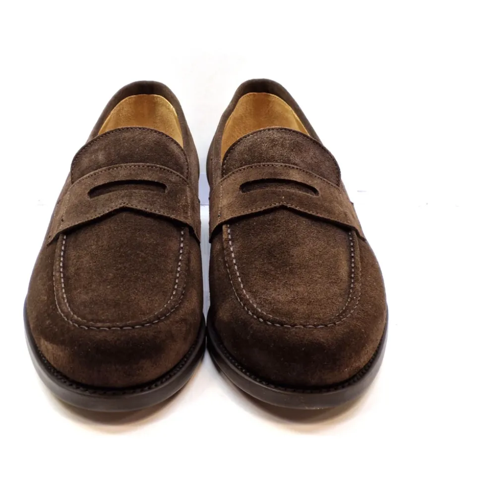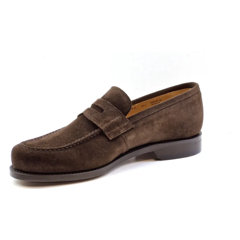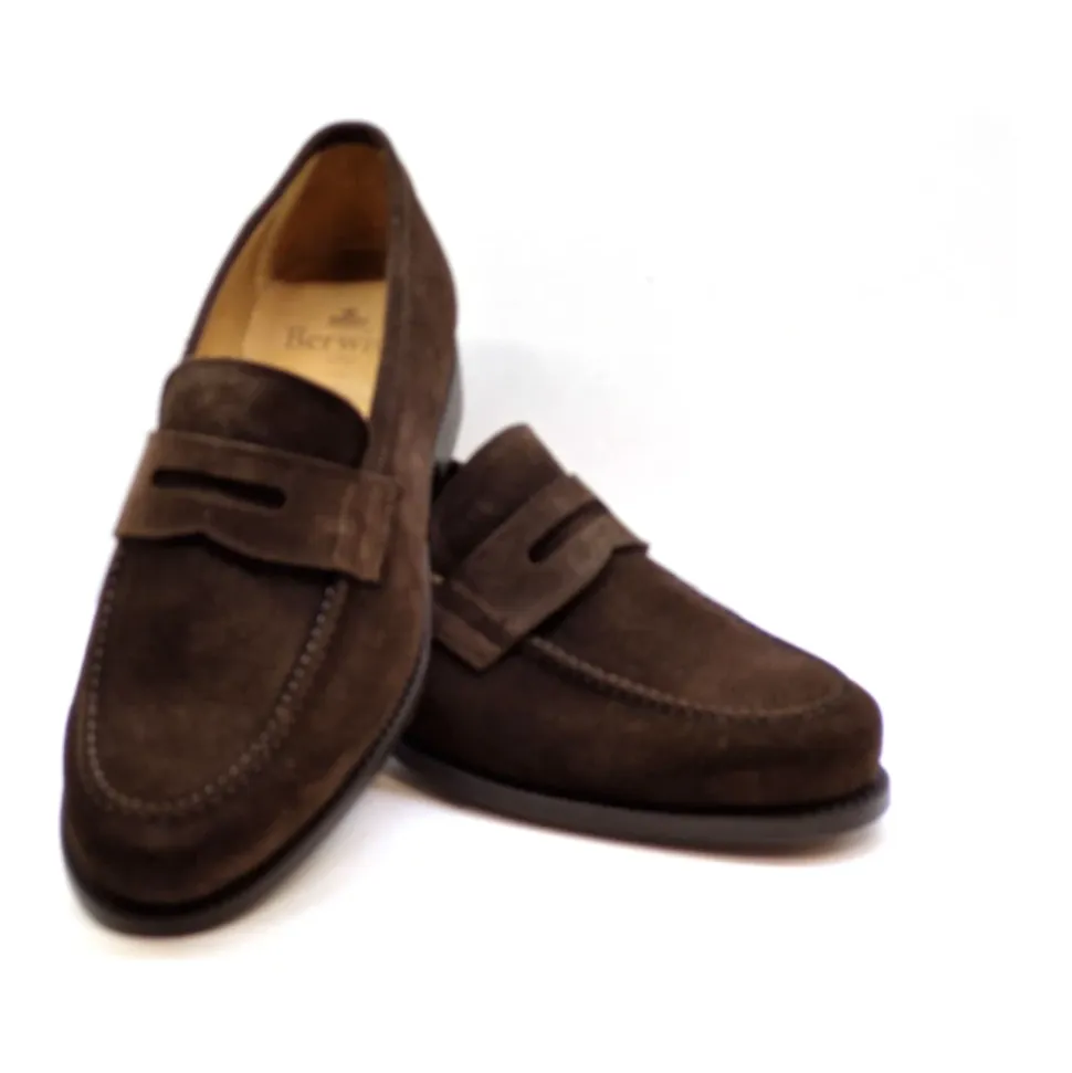 Berwick-brun ruskindsmokkasin med en klassisk klemme på vristen og en markeret kant på vampen med en fleksibel lædersål.