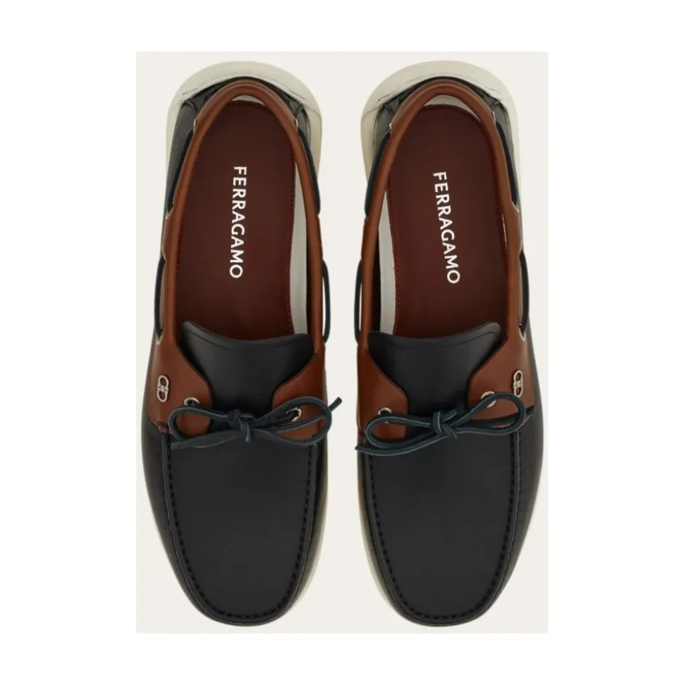 Oplev tidløs elegance med Ferragamos brune moccasin sko med sløjfe, perfekte til at tilføje et sofistikeret touch til ethvert outfit. Produkt detaljer: Brun | Læder | Sløjfe detalje | Dimensioner og pasform: Normal pasform | Sammensætning og pleje: 100% Læder | Aftørres med en fugtig klud.