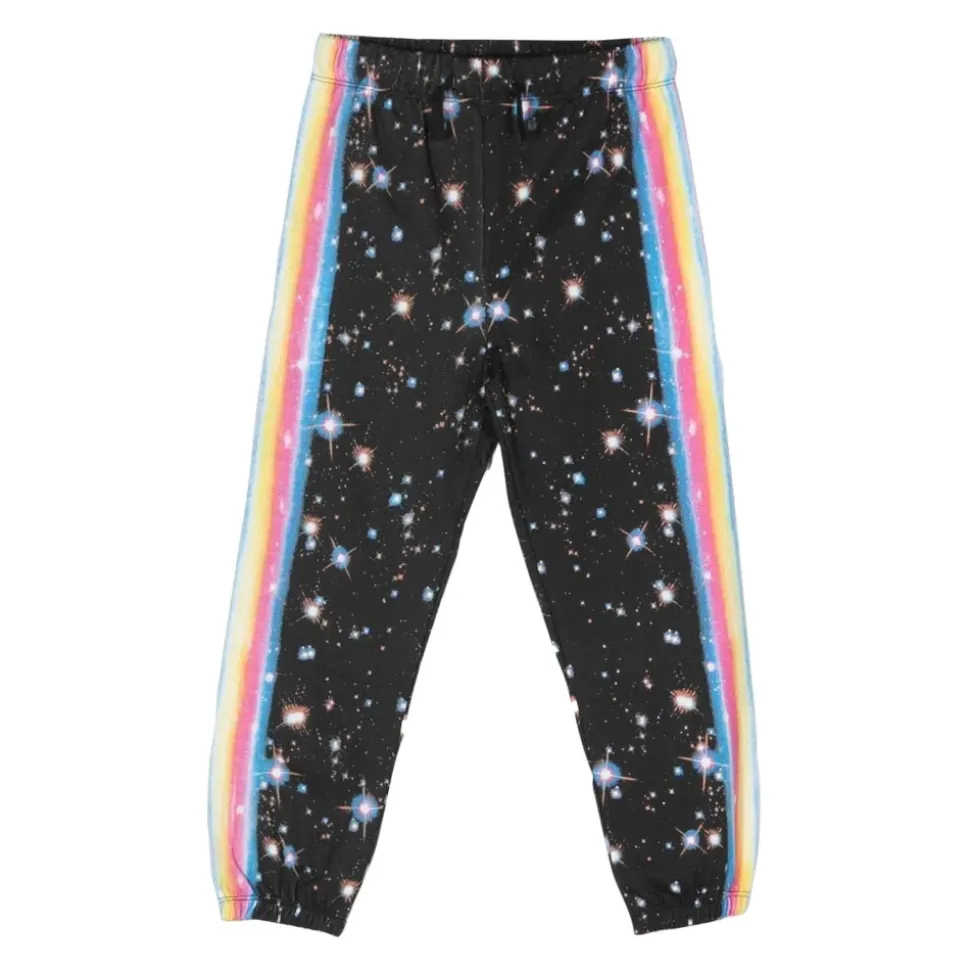 Opdag Stella McCartney Bukserne, designet for komfort og stil med elastisk talje og kant forneden. Perfekte til hverdagsbrug, disse bukser har et grafisk all-over print, der tilføjer et legende touch. Produkt detaljer: Sort | Multicolor | Bomuld | Elastisk talje | Elastisk kant forneden | Grafisk all-over print | Dimensioner og pasform: Regular fit | Sammensætning og pleje: 100% Bomuld | Maskinvask kold, tørretumbles ved lav varme.