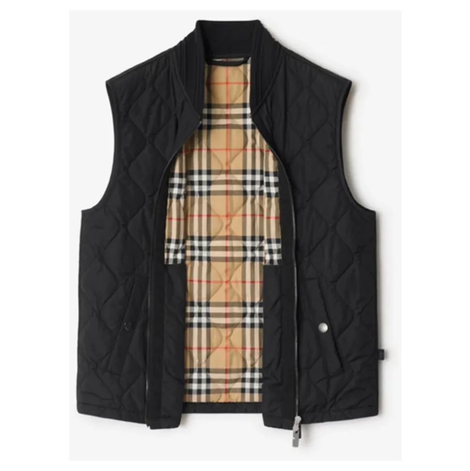 Burberry jakke med en tovejslynlås og signatur Burberry Check-foring, skabt til alsidig hverdagsbrug. Designet fremhæver funktionelle lommer og en brandet rytterfane for en raffineret finish. Nøgleattributter: Sort | Polyamid | Tovejs lynlåslukning | Sidelommer med trykknap | Burberry Check-foring | Equestrian Knight designfane i siden | Dimensioner og pasform: Modellen er iført størrelse M | Sammensætning og pleje: 100% polyamid