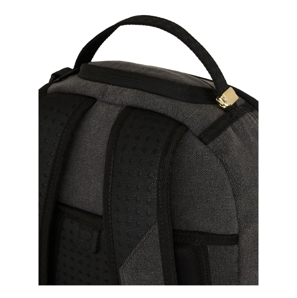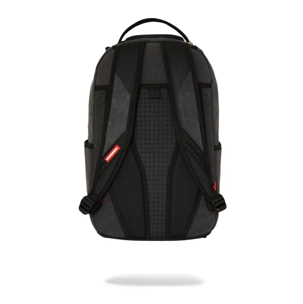 Frontlomme med lynlås Sidelommer Skjult lynlåslomme Separat rum til solbriller med fløjl Ergonomisk polstret ryg i net Justerbare stropper til personlig tilpasning Lynlåse med metalhardware Badge ‘Sprayground Authentic’ Bagærme kan fastgøres til håndbagage for at have hænderne fri Separat rum til bærbar computer 100% bomuld Ca. 46x30x15 cm