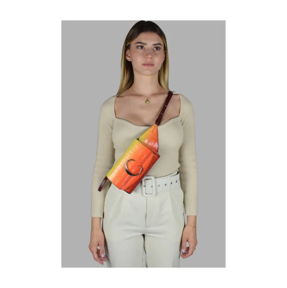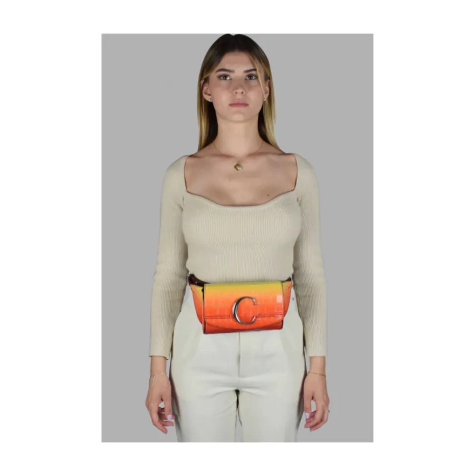 Chloé C Bæltetaske fra Chloé er et kompakt, håndfrit tilbehør med krokodillepræget læder og en slående gul-til-orange gradient – designet til ubesværet brug både dag og aften. Vigtigste egenskaber: Multicolor | Orange | Læder | Justerbart bælte | Klap med magnetknap | Krokodilleprægning | Gradient af gul og orange | Sølvfarvet C-logo på forsiden | Mål og pasform: Bæltelængde: 52–62 cm | Bredde: 17,5 cm | Højde: 11 cm | Dybde: 4 cm | Justerbar pasform via bælte | Sammensætning og pleje: Læder