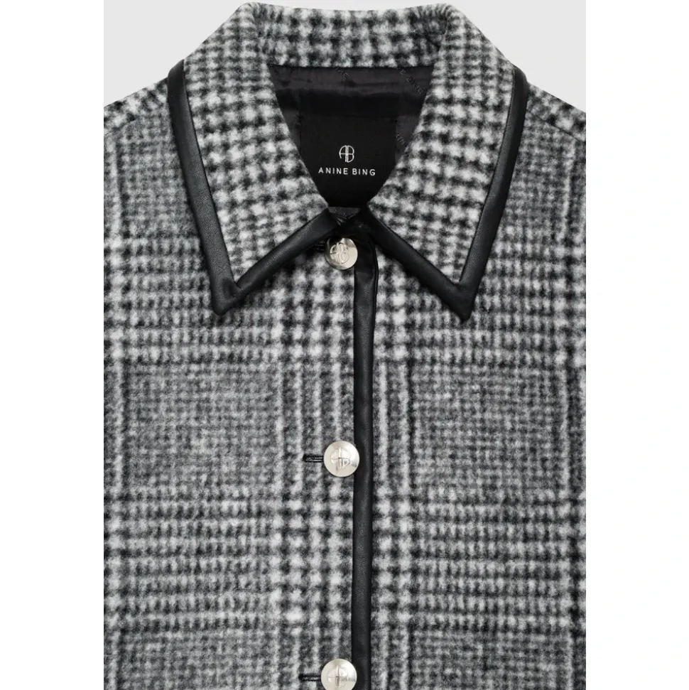 Anine Bing Camden Jacket er en moderne fortolkning af den klassiske uldjakke, designet til stilfuld lagdeling med en boxy, cropped silhuet og kontrast faux-læderkant. Vigtigste egenskaber: Grå | Uldblanding | Mellemvægt | Ikke-stretch | Knaplukning foran | To forlommer | Fuldt foret | Plaidmønster i sort og grå | Spread collar | Kontrast faux-læderkant | Sølvknapper | Mål og pasform: Længde: 65 cm (størrelse S) | Bryst: 112 cm (størrelse S) | Ærmelængde fra midten af ryggen: 89 cm (størrelse S) | Boxy pasform | Cropped længde (størrelse S) | Sammensætning og pleje: 87% polyester | 8% akryl | 5% uld | Maskinvask kold, hæng til tørre.