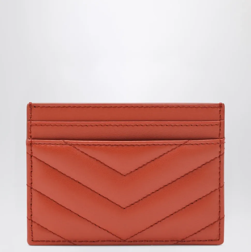Saint Laurent Cassandre Card Case er en kompakt kortholder i lammeskind, designet til hverdagsorganisering. Den har det karakteristiske Cassandre-logo og chevron-quiltede stikninger for en raffineret, slank profil. Vigtige egenskaber: Orange | Mørk Mandarin | Lammeskindslæder | Slank profil | Fem kortpladser | Centralt rum | Cassandre-logo | Chevron-quiltede stikninger | Guldfarvet hardware | Mål og pasform: B: 10,5 cm, H: 7,5 cm, D: 0,5 cm | Kompakt silhuet | Sammensætning og pleje: 100% lammeskindslæder | Rengør med en blød klud.