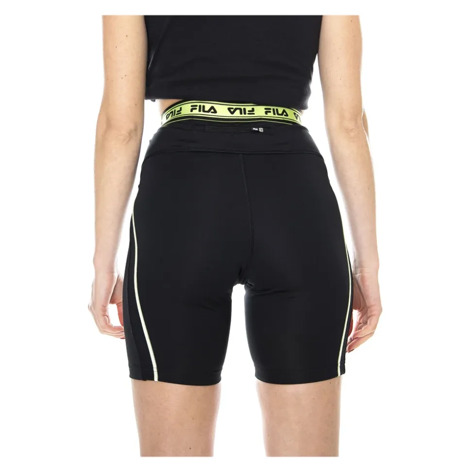 Bliv klar til træning med stil med disse Fila træningsshorts til kvinder. De sorte shorts har en tætsiddende pasform, elastisk talje, kontrastdetaljer og det ikoniske Fila-logo. Fremstillet af en blanding af 88% polyester og 12% elastan, er disse shorts perfekte til enhver træningsrutine.