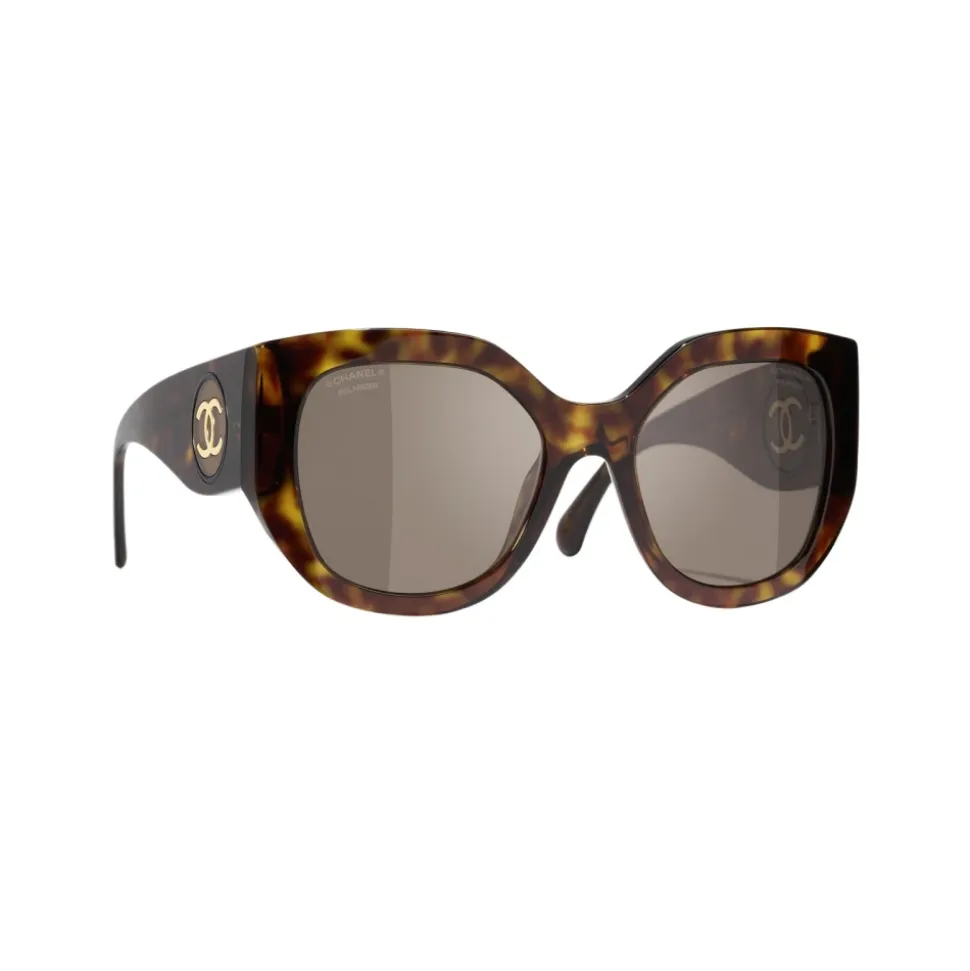 Chanel CH5550 Butterfly solbriller kombinerer en overdimensioneret butterfly-silhuet med polariserede glas for pålidelig, dagligdags solbeskyttelse. Den brune Havana acetatramme og det karakteristiske Chanel-hardware giver et raffineret og alsidigt look. Nøgleattributter: Brun | Havana | Acetat | Polariserede glas | 100% UVA/UVB-beskyttelse | UV-kategorifilter 3 | Receptvenlig | Inkluderer originalt etui | Inkluderer renseklud | Butterfly ramme | Signatur CC-logo på stængerne | Guldfarvet hardware | Dimensioner og pasform: Glasbredde: 55 mm | Glashøjde: 51 mm | Rammebredde: 130 mm | Stængernes længde: 140 mm | Sammensætning og pleje: Acetat | Polariserede glas | Tør af med en ren, tør klud. Opbevares i originalt etui, når de ikke er i brug.