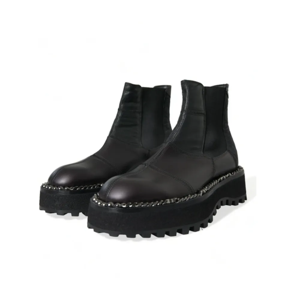 Træd ud i stil med disse smukke Dolce & Gabbana herre Chelsea-støvler. Fremstillet i Italien af en luksuriøs blanding af materialer, er disse elegante sorte støvler både behagelige og holdbare. Gummisålen giver stabilitet, mens logo-detaljen tilføjer et strejf af klasse. Træd ud med selvtillid med disse autentiske designerstøvler.