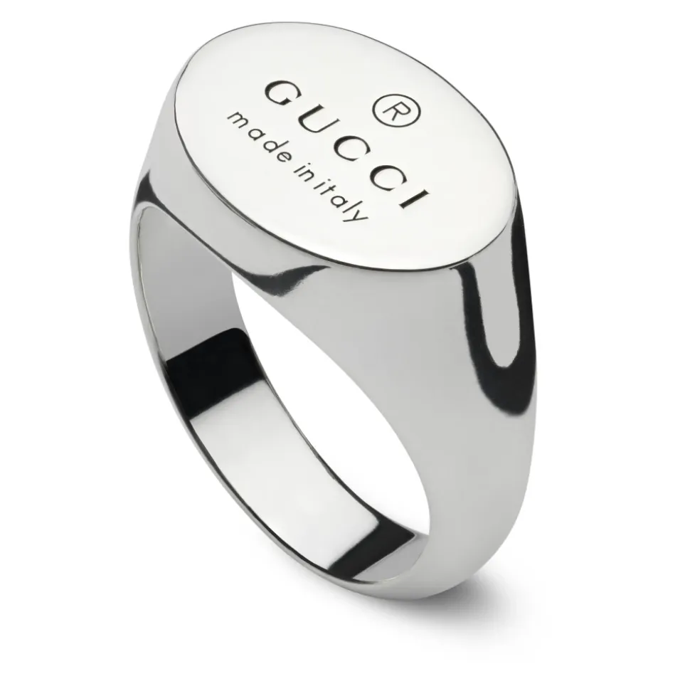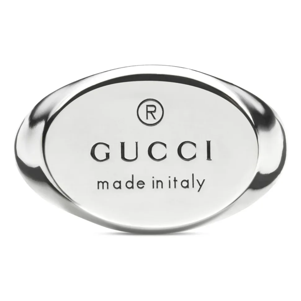 Gucci Chevalier Ring med Ovalt Mærke i sterlingsølv er et tidløst smykke, der tilføjer et strejf af elegance til ethvert outfit. Denne ring er fremstillet med præcision og er perfekt til dem, der sætter pris på diskret luksus. Produkt detaljer: Sølv | Grå | Sterlingsølv | Oval tag | Chevalier stil | Sammensætning og pleje: Sterlingsølv | Rengør med en blød klud; undgå kontakt med skrappe kemikalier.