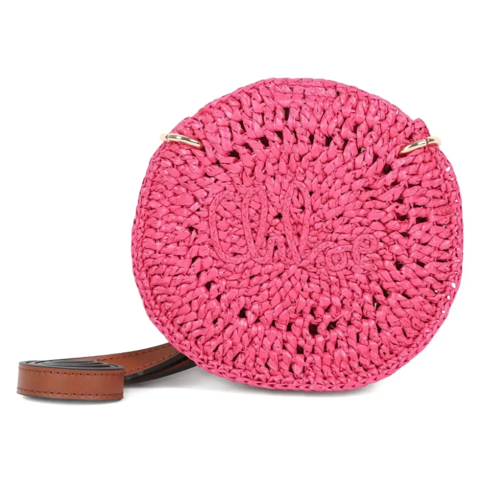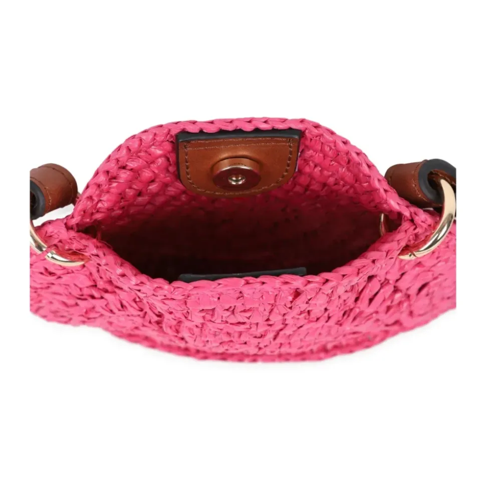 Chloé cirkulær læderskuldertaske med knaplukning og fremtrædende logo detalje. Kompakt og designet til håndfri bæring ved forskellige lejligheder. Nøgleattributter: Pink | Fuchsia | Læder | Skulderrem | Knaplukning | Rund silhuet | Chloé logo | Dimensioner & pasform: Diameter: 18 cm | Skulderrem længde: 90 cm | Sammensætning & pleje: Læder