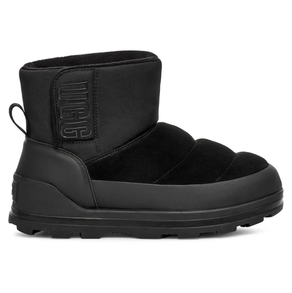 UGG Classic Klamath Mini er en vinterklar, kort støvle, der kombinerer en vandtæt overdel i ruskind med isoleret UGGplush-foring til kolde, våde forhold. Den er designet til nem på- og aftagning og pålideligt vejgreb på snedækkede gader. Vigtige egenskaber: Sort | Ruskind | Vandtæt | Isoleret UGGplush-foring | Kuldegrader ned til -32°C | Toggle- og burrelukning for nem justering | Trækflig bagpå for lettere adgang | Slidstærk gummiydersål med forlænget slidbane | Mini/kort støvlesilhuet | Rund tå | Forseglet overdel | TPU UGG-logo | Sammensætning og pleje: Ruskind | Tekstil | Syntetisk | Gummi | UGGplush (uld, lyocell).UGGs føles tætte i starten, men foret giver sig med tiden. Vi anbefaler din normale størrelse.