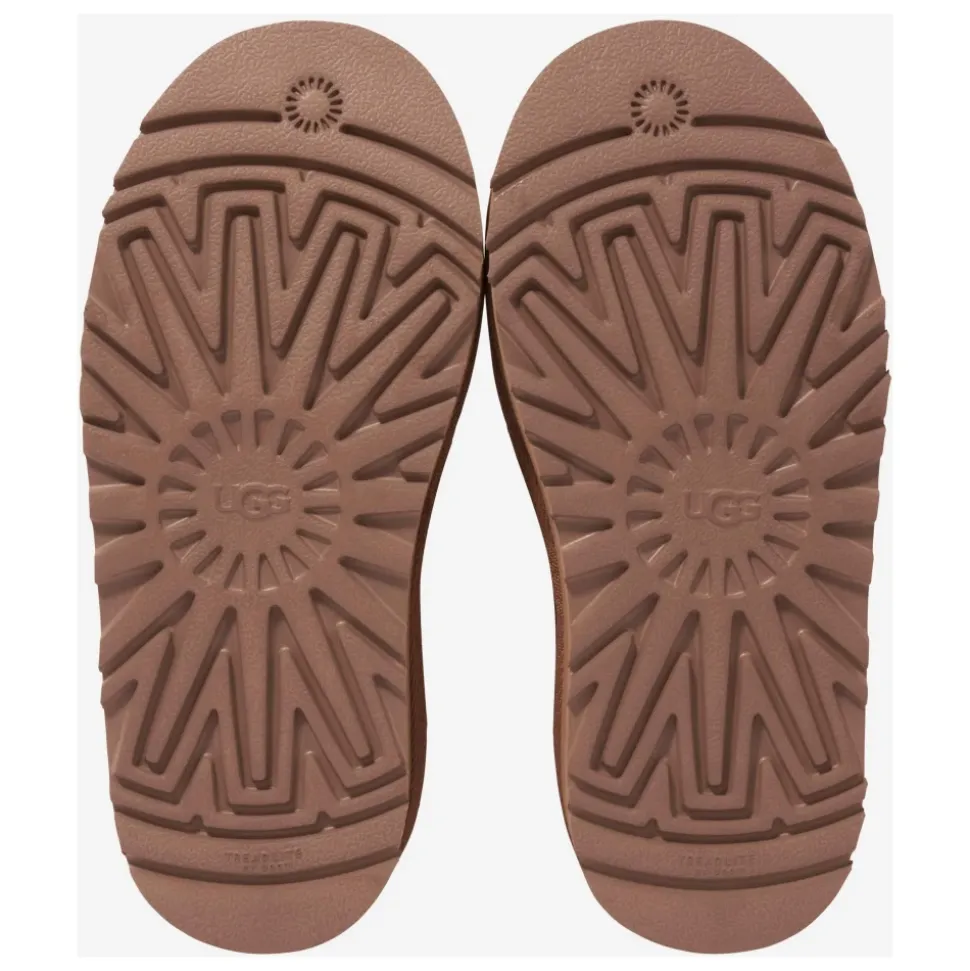 UGG Classic Mini Platform Boot kombinerer en ruskindsoverdel med blødt UGGplush-for og en hævet platformssål for komfortabel og afslappet brug. Vigtige egenskaber: Brun | Ruskind | UGGplush uldblanding for | Støddæmpende skumfodseng | Letvægts EVA-mellemsål | SugarSole™ EVA-ydersål | Trækflap bagpå for nem på- og aftagning | Skumfodseng | Vævet hæletiket med UGG®-logo | Overlocksøm detaljer på sømme | Platformssål silhuet | 3,81 cm hælhøjde | Dimensioner og pasform: Hælhøjde: 3,81 cm | Sammensætning og pleje: Ruskindsoverdel | UGGplush-for — 17 mm: 60 % uld, 40 % lyocell | UGGplush indersål — 17 mm: 60 % uld, 40 % lyocell | Skumfodseng | EVA-mellemsål | SugarSole™ EVA-ydersål | Tekstilbinding: 100 % polyester
