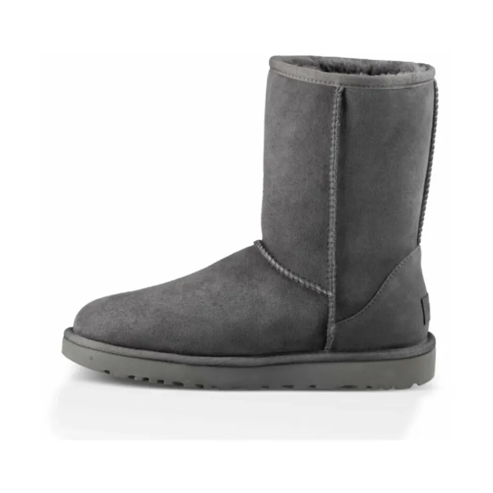 Classic Short II støvler er et stilfuldt og alsidigt valg til vinterbrug. Fremstillet af luksuriøst fåreskind, tilbyder disse støvler både komfort og holdbarhed. Produkt detaljer: Grå | 100% fåreskind | Vandtæt | Pletbestandig | Afspændt design | Opdateret Treadlite sål | Dimensioner og pasform: Normal pasform | Sammensætning og pleje: 100% fåreskind | Pletrensning med en fugtig klud..UGGs føles tætte i starten, men foret giver sig med tiden. Vi anbefaler din normale størrelse.