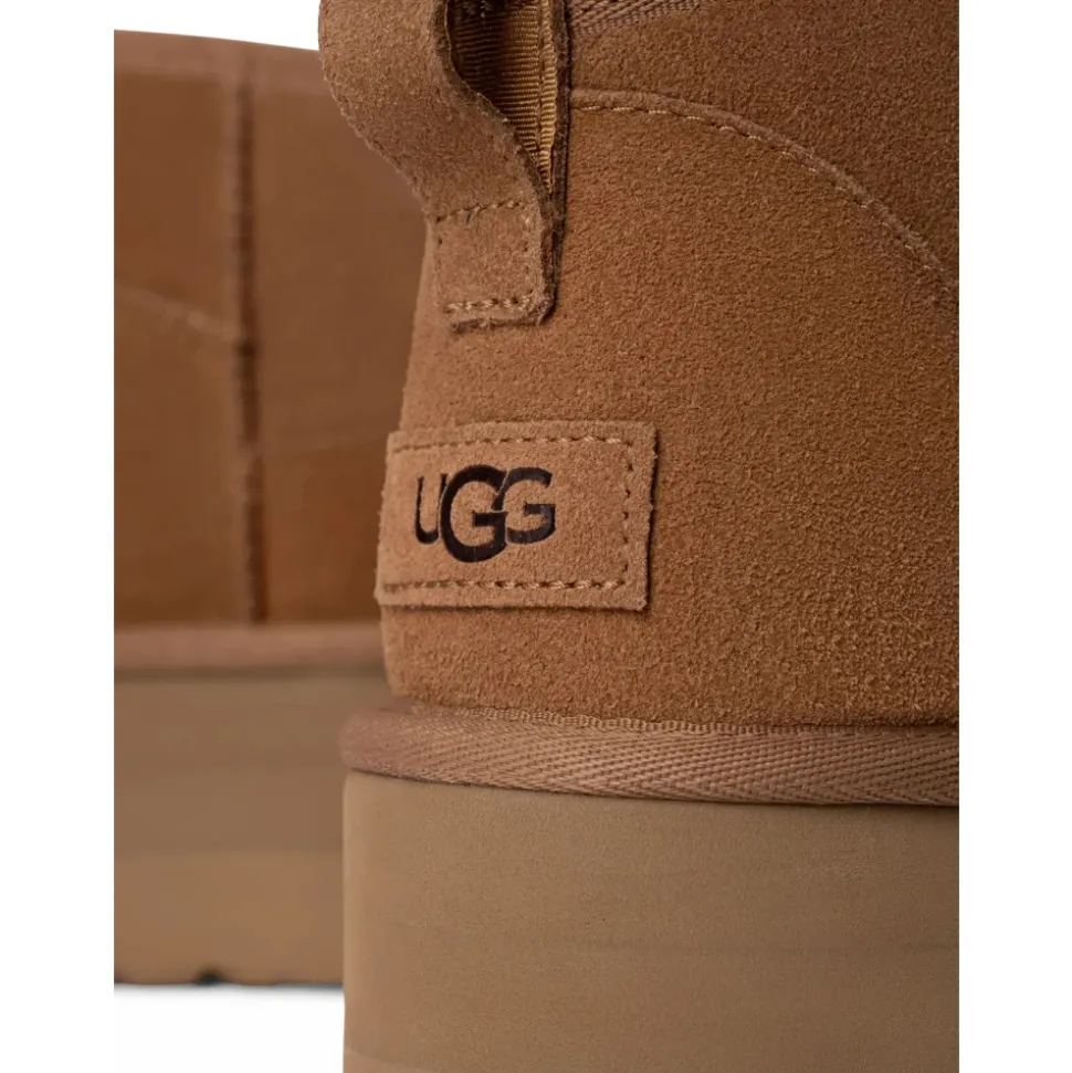 UGG Classic Ultra Mini Platform er en vinterstøvle, der kombinerer UGG’s genkendelige komfort med en hævet platformsål for en elegant og afslappet silhuet. Vigtige egenskaber: Brun | Chestnut | Platformsål | Mini skaft | Platformsprofil.UGGs føles tætte i starten, men foret giver sig med tiden. Vi anbefaler din normale størrelse.